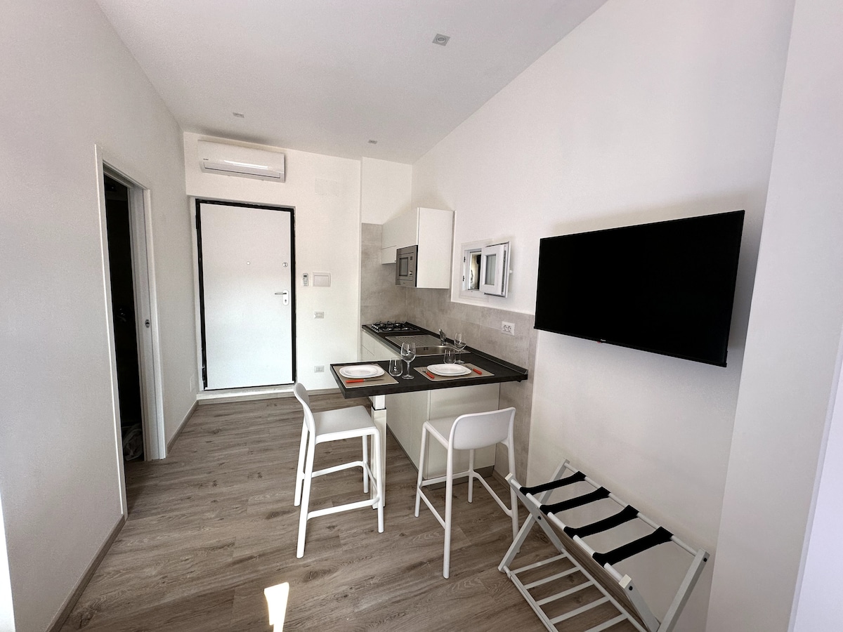Studio sa novouređenom i pažljivo namještenom čajnom kuhinjom, koji se nalazi na četvrtom spratu stambene zgrade (bez lifta). Njegova centralna lokacija omogućava vam da jednostavno prošetate do obližnje plaže Serapo i glavnih istorijskih znamenitosti grada. U neposrednoj blizini, pored autobuske stanice, nalaze se i usluge, supermarketi, apoteke, barovi i restorani. Boravišna taksa od 2,50 € po danu za svakog gosta koja se plaća po dolasku u objekat.