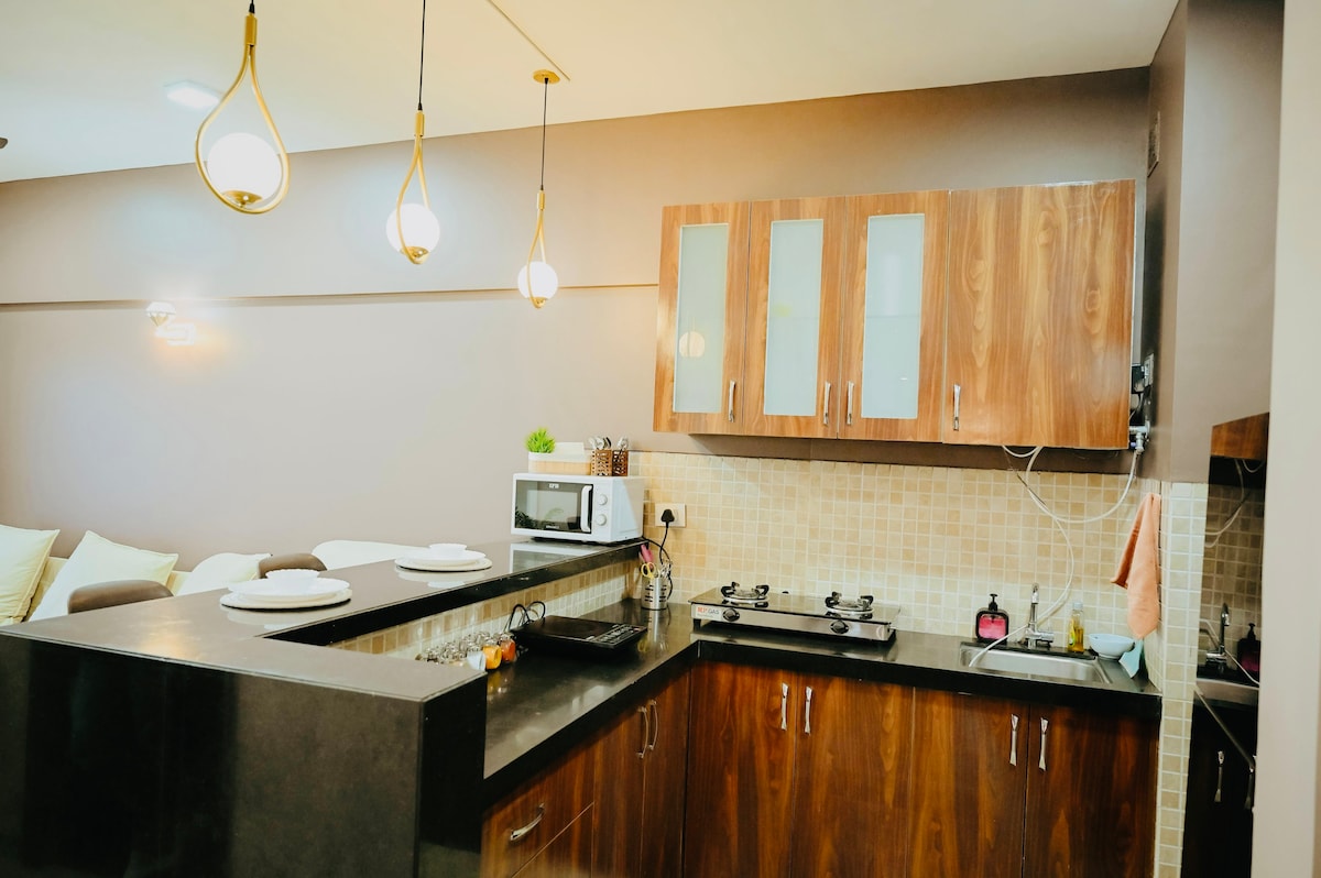 Dobro došli u naš opuštajući 1-BHK apartman, koji se nalazi na 2. spratu,gdje se udobnost spaja s pogledom na brda i autoputeve koji oduzimaju dah. Uživajte u dobro opremljenoj kuhinji, udobnom krevetu i brzom internetu za ugodan boravak. Smješten u mirnoj četvrti, idealno je mjesto za opuštanje. Istražite obližnje atrakcije ili uživajte u sadržajima kao što su bazen, fitnes centar i pogled na jezero, savršeni za opuštanje i zabavu.