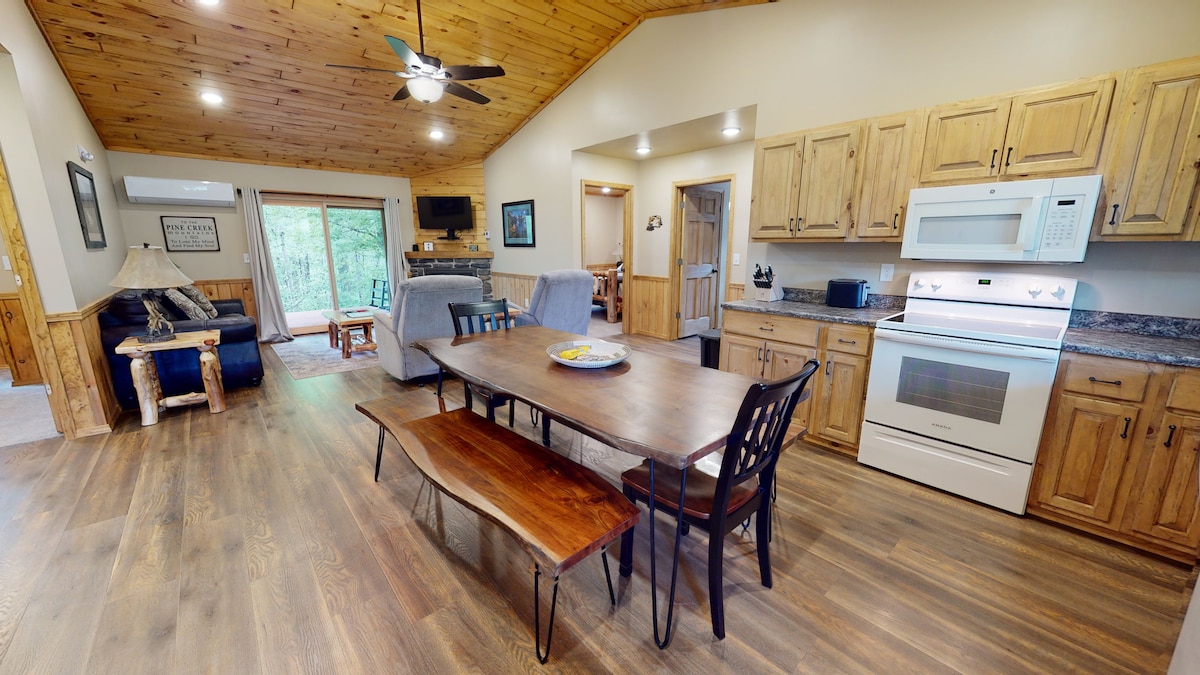 Ova moderna brvnara sa 4 spavaće sobe i rustikalnim dekorom, 2 kupatila i jednim spratom, odlična je za vaš porodični odmor. Ima kompletnu kuhinju, trpezariju, dnevni boravak sa plinskim kaminom i kauč za spavanje sa bračnim krevetom. S pogledom na Pajn Krik, ova brvnara ima i klima-uređaj, grijanje, roštilj na ugalj, Wi-Fi i kablovsku televiziju. Kao i naše druge brvnare, i u ovoj je takođe zabranjeno pušenje i dozvoljeni su kućni ljubimci. Kućni ljubimac je dozvoljen uz naknadu. 17 milja od Velsbora, >20 minuta vožnje do Čeri Springsa ili Velikog kanjona Pa