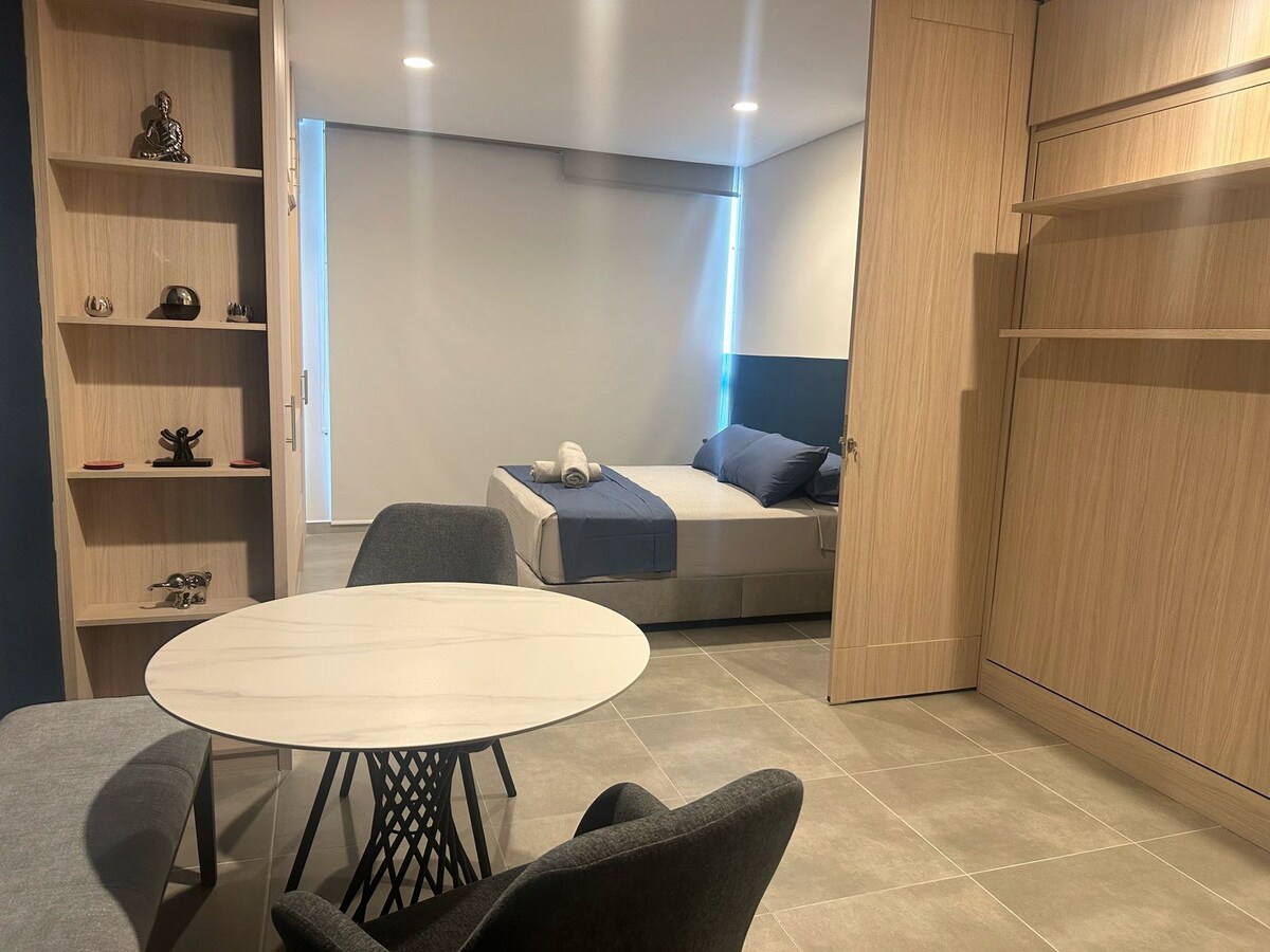 Ekskluzivni novi apartman nalazi se u turističkoj četvrti u marini Santa Marta. Potpuno namješten, nalazi se na 9. spratu, modernog dizajna, balkon. Apartasuite se nalazi u istoj zgradi hotela koji nudi Meriot, a zajedničke prostorije dele se sa hotelom: poluolimpijski bazen sa barom, međunarodni restoran, teretana, spa. Spektakularan pogled na more, klima uređaj. Ima sve što vam treba za odlično iskustvo na najvišem nivou.