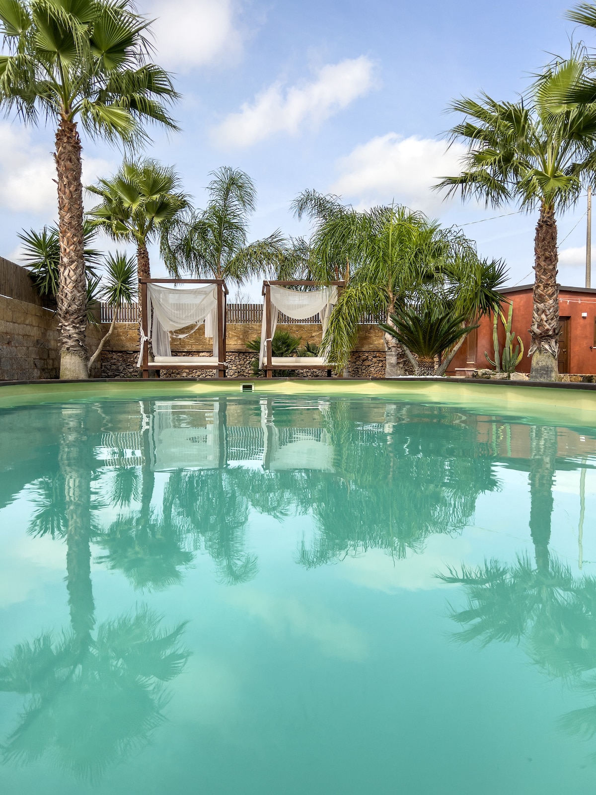 Dobro došli u svoju opuštajuću oazu u srcu Salenta. Ova vila u mediteranskom stilu smještena je u mirnom panoramskom području, okružena prirodom i samo nekoliko minuta vožnje od najljepših plaža u regionu. Najbliži aerodrom je u Brindiziju. ⸻ 🌿 Posebnosti: • Privatni panoramski jacuzzi • Mirna i tiha lokacija • More je udaljeno samo nekoliko minuta vožnje automobilom • Prostor za roštilj na otvorenom • Savršeno za porodice i parove • Wi-Fi, klima-uređaj, sva udobnost ⸻ Čeka vas opuštajući odmor u Salentu.