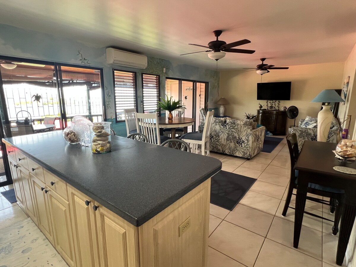 Naš PRELEPO RENOVIRANI stan se nalazi na samoj plaži - ništa između vas i pogleda od milion dolara, osim 2 palme i belog peska od 40 stopa šećera. Naš stan na plafonu katedrale nudi sve što biste mogli da poželite - kompletnu kuhinju , glavnu spavaću sobu, kupatilo, potkrovlje za spavanje sa dva bračna kreveta i WC. Takođe, centralni klima-uređaj, besplatan Wi-Fi, organska posteljina i organski sadržaji za kupanje, kao i korišćenje kajaka. Zašto ne biste razmislili o iznajmljivanju stana sa dve spavaće sobe po ceni od jedne spavaće sobe.