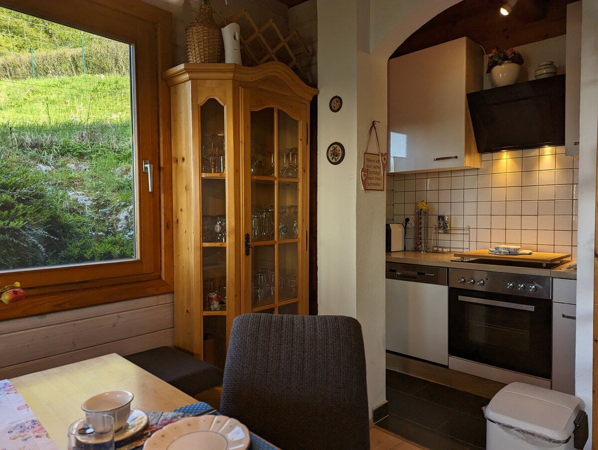 Privatni stan (oko 50 m²) je lepo namešten i uređen u prirodi, a ipak je udaljen samo 1,5 km od centra grada do Vöcklabruka. 2 spavaće sobe (1 krevet sa 180/200 i 1 krevet sa 90/200) za ukupno 3 gosta Udobna trpezarija, potpuno opremljena kuhinja, aparat za kafu sa dostupnim jastučićima. Wi-Fi, parking ispred kuće. Privatna terasa sa Traunsteinblick-om. Kupatilo sa tušem, WC-om i umivaonikom.