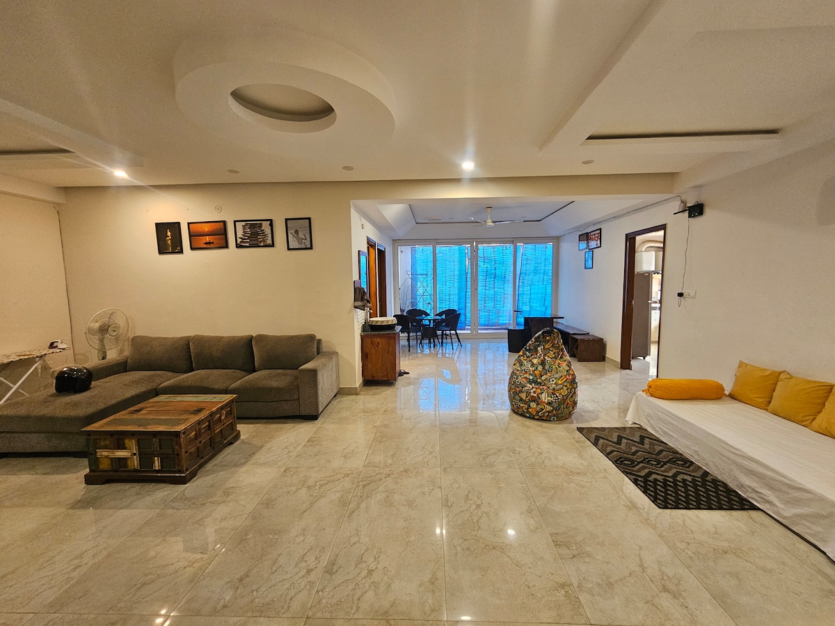 Saaluin moderni STAN se sastoji od visokog plafona na kojem sunčeva svjetlost udara i osvjetljava cijeli stan. Uživajte u boravku u našem prostranom stanu koji se sastoji od 1BHK sa jednom dodatnom sobom ZA KUTIJE, potpuno opremljenom kuhinjom, baštenskim namještajem i privatnom krovnom terasom samo za vas. Uz naš luksuzni enterijer i vrhunsku privatnost na gornjem spratu, osjećat ćete se kao da je to vaš privatni dom!