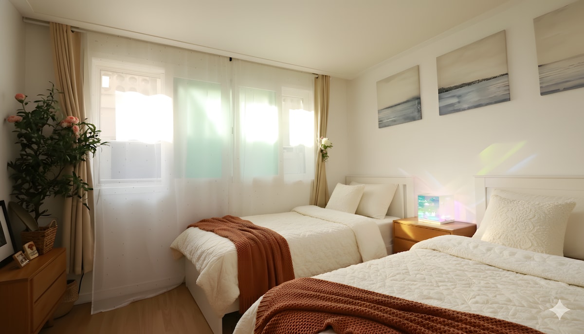 Idite na moj profil i pogledajte moju drugu kuću🤍💜 Ista zgrada, sve 4 sobe su u dobrom stanju i upravljaju se same po sebi. 🙏🏻 Ručno sam izradio ukrasne pločice kako bi odgovaralo belom tonu! Zdravo,🙂 ja sam ženski domaćin i Mi se brinemo o „obezbeđenju“ kako bi gosti mogli da borave sa povjerenjem, a mi „svakodnevno čišćenje, pranje posteljine i dezinfekciju“ kako bismo osigurali udobno i prijatno okruženje. Dostupna parking mjesta 🚘 Dostupno je sve Ott gledanje, uključujući😈 Netflix, Disney +, Youtube, Tiving, Watcha, Wavve itd. 📺 illy Aparat za kafu sa kapsulom dobrodošlice ☕️ besplatan Wi-Fi 💻 Emocionalne fotozone 📸