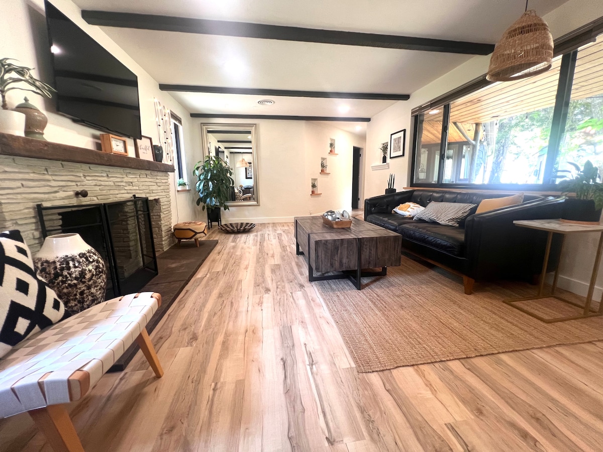 Opustite se u ovoj novoj, profesionalno uređenoj i namještenoj luksuznoj kući u nizu nedaleko od parka Vitvoter! Moderan dvosoban (oba apartmana) dom nudi jedinstvenu ravnotežu privatnog i zajedničkog prostora. Kuhinja/dnevni boravak pruža udoban prostor za okupljanje osvijetljen svijetlim prozorima i terasom na balkonu. U zimskim mesecima, udobno se smestite pored kamina i strimujte svoje omiljene emisije na ravnom ekranu. Uživajte u izlascima i zalascima sunca sa terase na krovu.