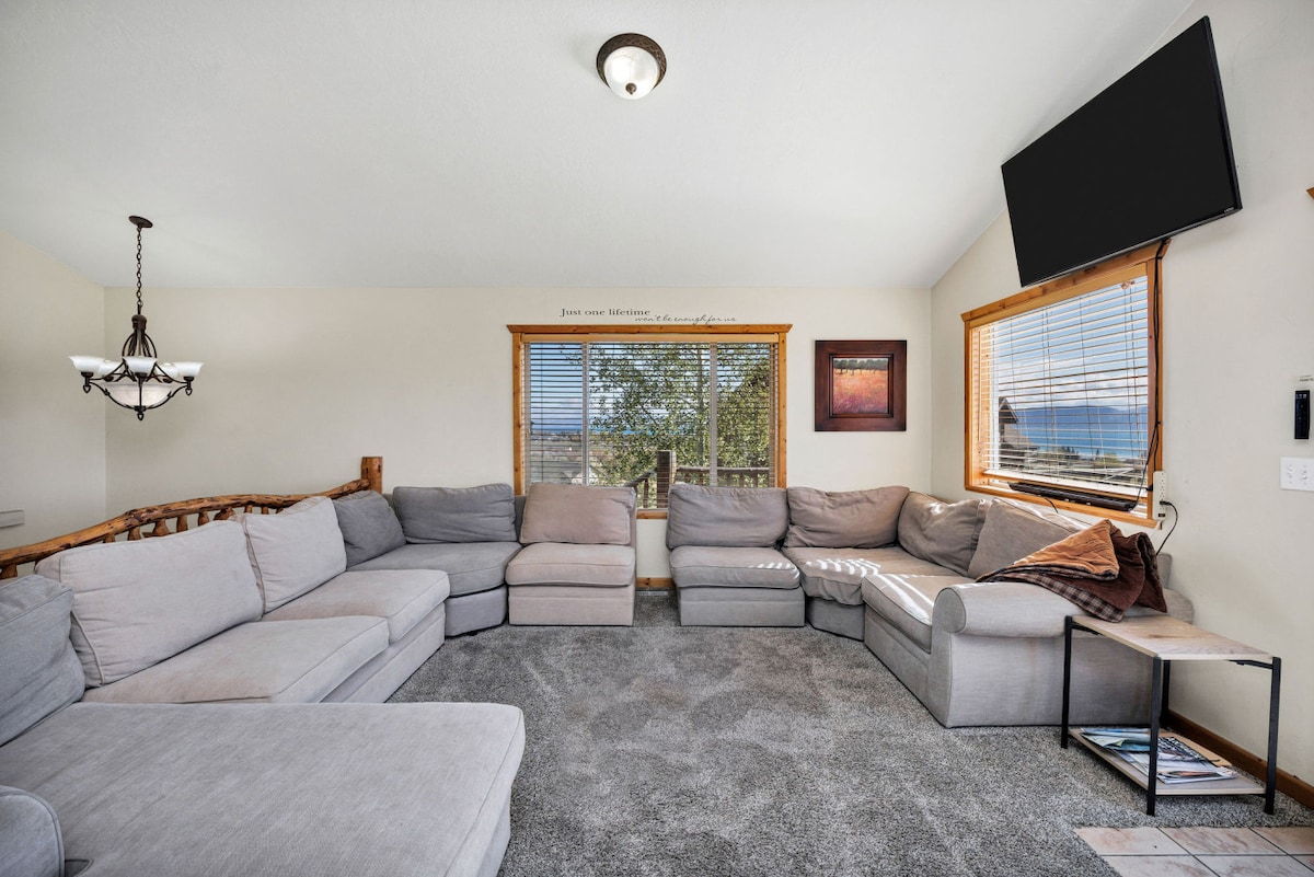 Povedite svoju porodicu u ovu prostranu brvnaru Bear Lake sa zadivljujućim pogledom na jezero i planine. Opustite se na dvije velike palube dok posmatrate povjetarac jedrilica. The Bear Lake Marina is a 1/2 mile drive to launch your boat. Pokrenite svoje terensko vozilo ili SxS za vožnju uz zalazak sunca u planine sa pristupom sa zadnje strane brvnare. Nakon što se na plaži opustite i opustite pored 2 ognjišta, igrajte svoje omiljene igre s kartama, stoni tenis u prostranim porodičnim sobama ili se udobno smjestite ispred dva televizora od 75inča.