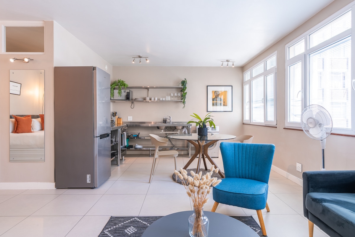 Opustite se i gledajte najčarobnije zalaske sunca iz ovog dobro lociranog stana u Sea Pointu. Naša jedinica je s ljubavlju dizajnirana da otvori prostor sa izloženim gredama, potpuno opremljenu kuhinju, uključujući mašinu za pranje veša i sudova, i spektakularan kutak sa pogledom na more sa visećom stolicom za uživanje. Opšti sadržaji uključuju brzi Wi-Fi, pametnu TV, zavese za blokiranje i bračni krevet koji se može razdvojiti u 2 kreveta za jednu osobu, ako putujete sa prijateljem!
