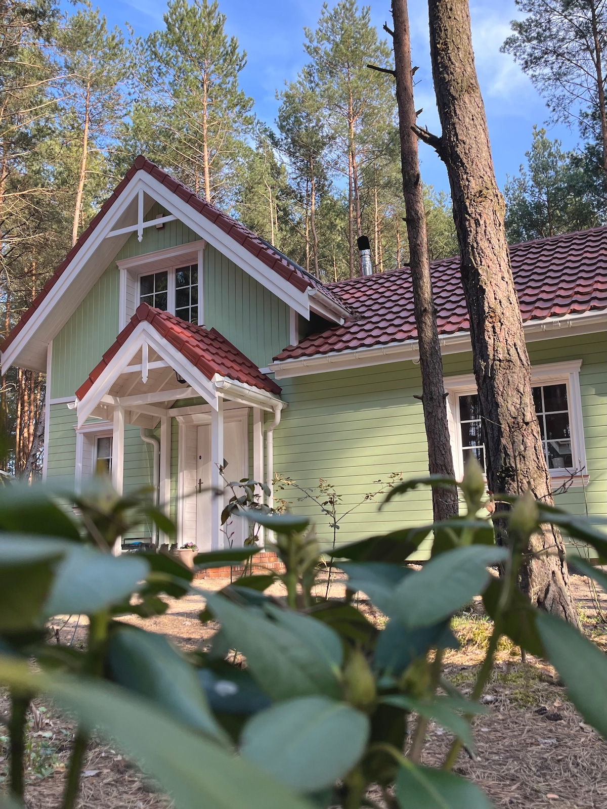 Unutrašnji borovi i breze, gde se ptice probude u zoru mogu da budu opuštene od svakodnevice. Predivna natkrivena terasa je sjajno mesto ne samo za slavlje, već i za super opuštanje. Dve spavaće sobe, jedna sa bračnim krevetom, a druga sa dva kreveta za jednu osobu, pruža udoban san. Kupatilo je opremljeno mašinom za pranje veša, a kuhinja je opremljena mašinom za pranje sudova i frižiderom. Intimne večeri mogu da provedete pored kamina ili na terasi. I sve je udaljeno samo sat vremena od Varšave!
