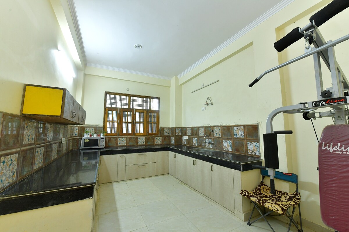 Približite se prirodi, udobnosti i praktičnosti u našoj šarmantnoj kolibi Blubel! 10 minuta od aerodroma, 20 minuta od željezničke stanice Charbagh, odmah iza poznatog tržnog centra Lulu, daleko od tržnog centra Palassio, samo 500 metara od bolnice Medanta, naša seoska kuća je strateški pozicionirana za boravak bez premca. Smješten u srcu Sushant Golf Cityja, služi kao idealno čvorište za vašu posjetu Lucknowu! Uz bračni krevet, dobijate i dva dodatna sklopiva kreveta.