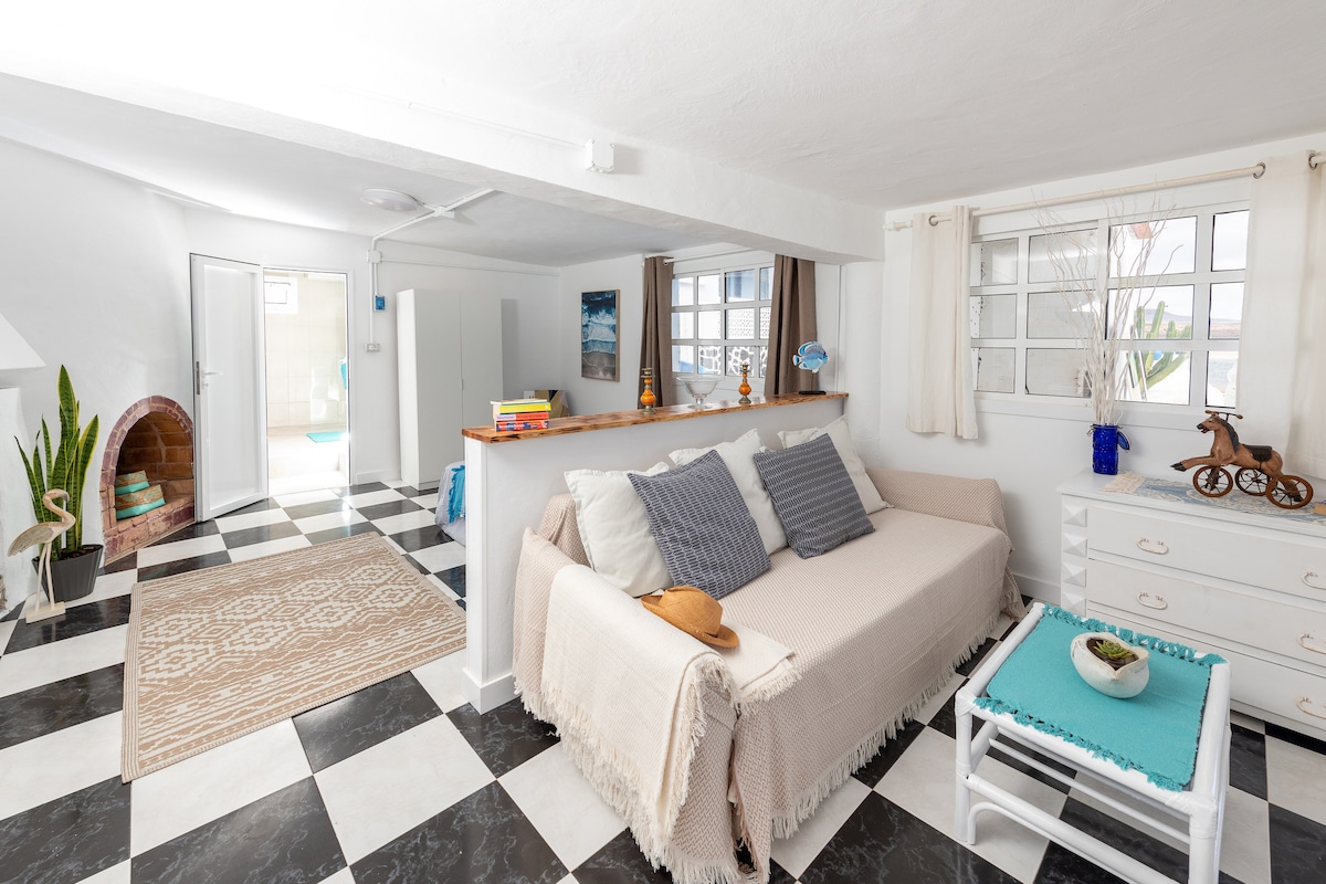 Ovaj prostrani garsonjera je deo vile NaJoSa, koja se nalazi na brdu u malom izolovanom selu Las Branas, daleko od turista i noćnog života u veoma bezbednom, prijateljskom delu grada, na 15 minuta vožnje od zlatnih plaža Papagajo, 5 minuta vožnje do crne plaže, 10 minuta vožnje do Plaja Blanke. Ogromna privatna bašta pruža zadivljujući pogled na Atlantski okean, kao i na vulkan Timanfaya. Nevjerovatni zalasci sunca! Pristup za invalidska kolica sa parkingom direktno ispred privatnog ulaza.