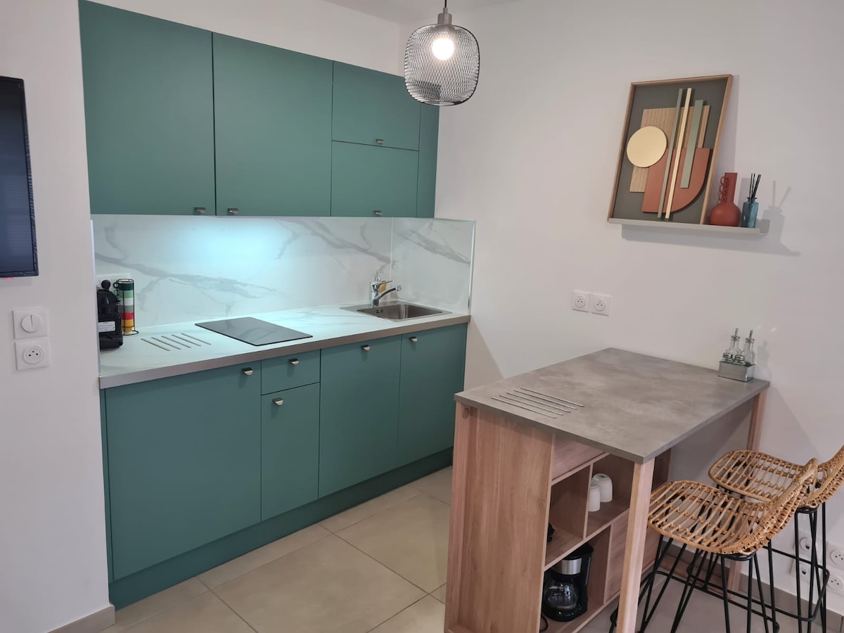 Tih, elegantan smještaj površine 30 m2. Idealno se nalazi u prizemlju nove rezidencije isporučene 2024. godine, u srcu Genas Azieu. 30 minuta od centra Liona, 10 minuta od aerodroma Sent Egziperi, 10 minuta od Eurexpo Chassieu, 8 minuta automobilom od stadiona Groupama i Arene. Potrudili smo se da ova čahura bude šarena, prijatna, moderna i dobro opremljena. Namenjena je za jednu ili dvije osobe. Terasa vam pruža predivno svjetlo i omogućiće vam da se opustite. Radujemo se vašem odgovoru!
