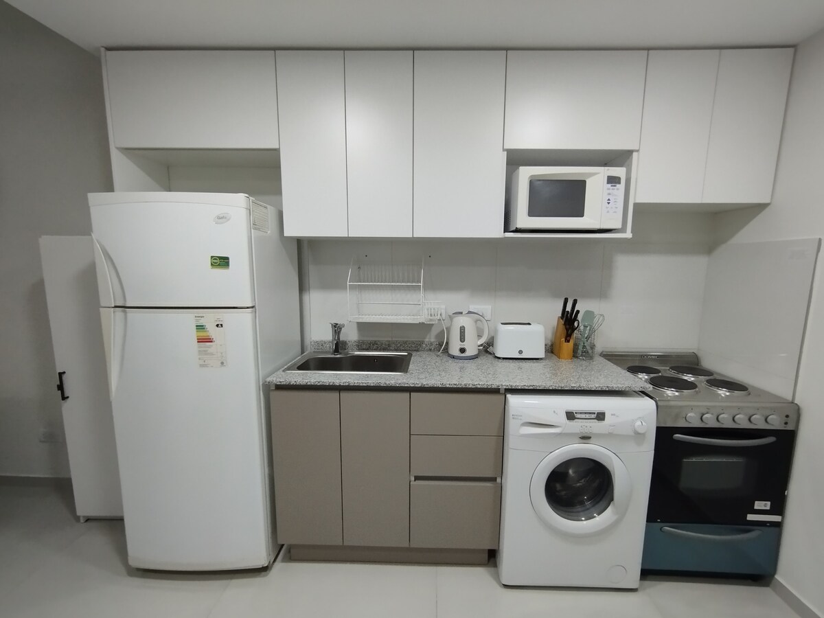Dobro došli u Neuquén! Otkrijte naš udobni studio apartman, idealan za putnike koji traže udobnost i stil u srcu Nqn-a ! Ovaj moderni i svijetli prostor ima: kombinovanu dnevnu sobu i spavaću sobu, Smart TV i Wi-Fi. Potpuno opremljena kuhinja. Moderno kupatilo sa tuš kabinom. U blizini su restorani, prodavnice, javni prevoz i mjesta od velikog interesa! Učinite svoj boravak u NQN-u nezaboravnim iskustvom. Rezervišite sada i uživajte u udobnosti u punom sjaju!