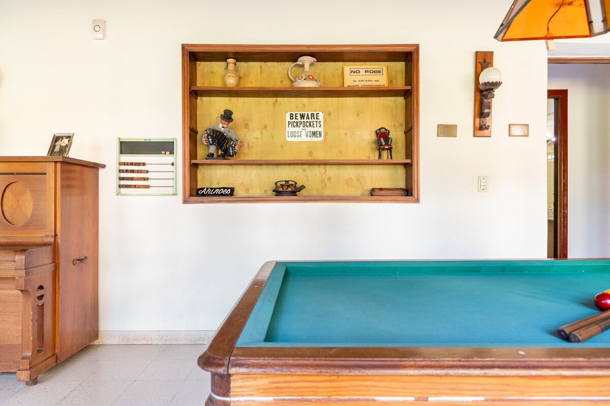Iznajmljivanje se računa po danu (ne po noćenju). Vreme dolaska i odlaska pre rezervacije (pogledajte napomenu u nastavku) Prekrasan stari šumarak od 10.000 kvadratnih metara Bazen (sezonski) 13x6 metara, noćno osvetljenje i mokri solarijum Teren za veslanje (noćno osvetljenje) Roštilj U kući se nalaze drva za ogrev 4 spavaće sobe, 2 kupatila Bezbednosni sistem sa kamerama i senzorima u celom objektu Pod Sto za bilijar (ne bazen) Metegol i žaba Dozvoljeni kućni ljubimci Trajni enkargado