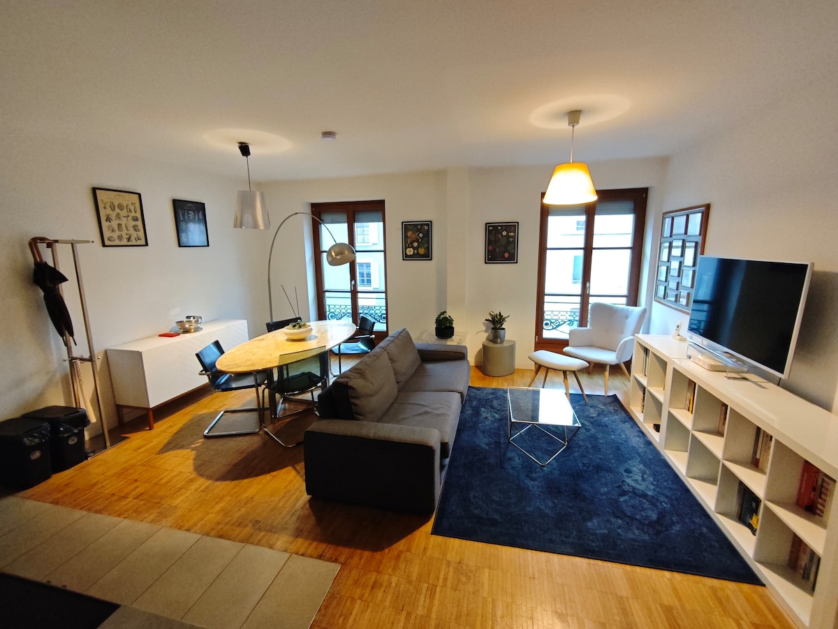 Ako tražite udoban, miran smještaj u srcu Starog grada Ženeve, naš moderni, novouređeni dvosobni stan je savršen izbor za vas! Potpuno je opremljen, sa potpuno novim kupatilom, odvojenom kuhinjom, kaminom, veoma udobnim bračnim krevetom i udobnom sofom. Smještaj je opremljen svime što vam može zatrebati tokom boravka, uključujući fen za kosu, mikrotalasnu pećnicu, Nespresso aparat za kafu, toster, kuvalo za vodu i drugo potrebno kuhinjsko posuđe.