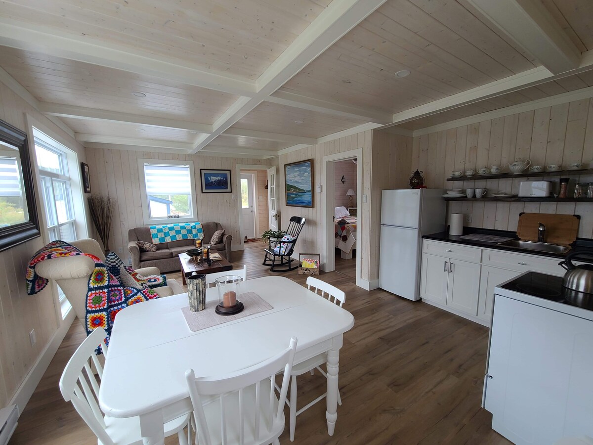 Opustite se u ovom mirnom i elegantnom prostoru. Seoska kuća na ostrvu se nalazi u mirnom gradu Južnom zalivu na poluostrvu Bonavista. Ova novoizgrađena seoska kućica nalazi se na ivici okeana koja je zvučala priroda. Opustite se u privatnosti uz svoju omiljenu knjigu na našoj velikoj terasi iznad prelijepog zaliva. Prošetajte našom baštom koja vas vodi do privatne plaže. Ili samo sedite i uživajte u miru koji će vam ovo posebno mjesto pomoći da pronađete.