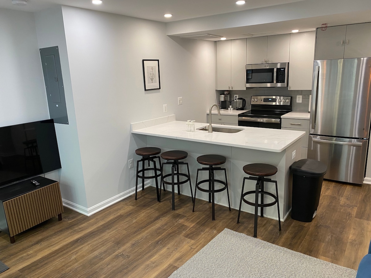 Novouređeni podrumski apartman smješten u mirnoj četvrti na vrhu Džordžtauna, D.C. Na samo nekoliko koraka od ulice Viskonsin u kojoj se nalaze specijalizovane maloprodajne radnje, udobni kafići i razni restorani. Uživajte u udobnosti dvije prodavnice namirnica koje su udaljene manje od 10 minuta hoda. Popularni M St i Georgetown Waterfront udaljeni su samo 14 minuta lagane šetnje nizbrdo. Samo vas kratka vožnja Uberom dijeli od Kenedi Centra i spomenika. Ovaj dio grada je prikladan za bicikle.