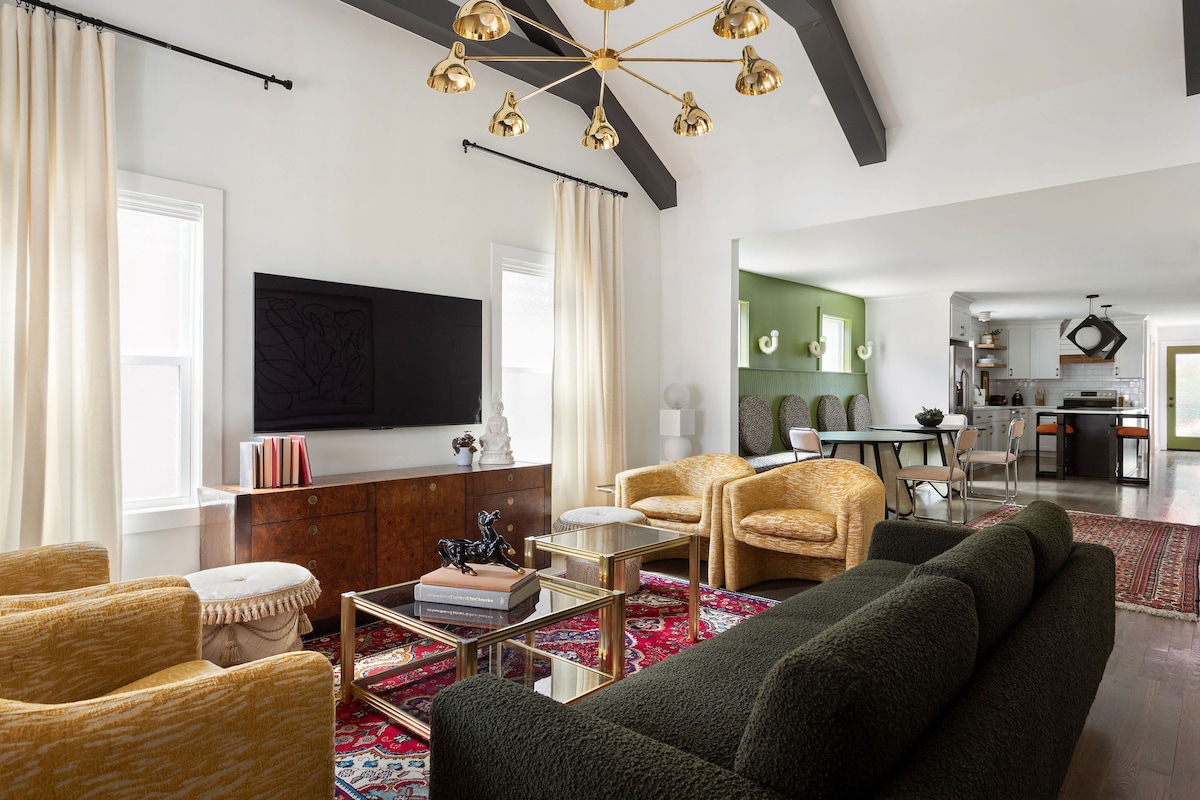 Doživite Muzički grad iz ovog dragulja - strastvenog projekta poznatog lokalnog dizajnera. Prilagođena umjetnička djela, mermerne radne površine, namještaj „Restauracija hardvera“ i jedinstveni detalji kao što su istorijska unutrašnja vrata i pažljivo izložena cigla čine ovo udobnim remek-djelom. Kada dođe vreme da istražite grad, ovaj dom koji se nalazi u centru grada je savršeno mesto za skakanje. Prošetajte do najboljih restorana u Nešvilu u Germantovnu ili idite na 4-5 minuta Ubera do većine najboljih atrakcija Nešvila.