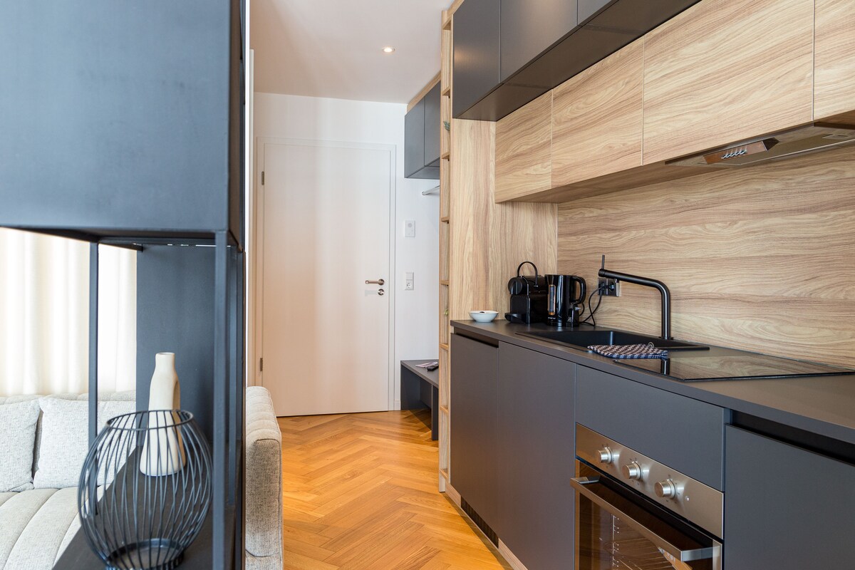 Prekrasan novi renoviran i potpuno namješten prostran stan (62 m2) sa 2 odvojene sobe, svaka sa bračnim krevetom za najviše 4 osobe. Dječiji krevetac može se dodatno postaviti Na dohvat ruke (oko 15 minuta) od Europarka i Rulantike u Rustu. U neposrednoj blizini se nalazi prodavnica namirnica uklj. Pekara i picerija. Za boravke duže od 7 dana, veš se menja nedeljno Dobar pristup autoputu i zaustavljanja