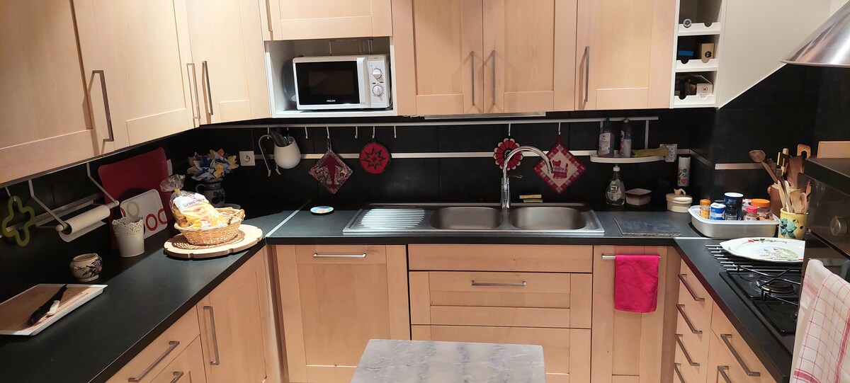 Šarmantni dupleks u našoj sušari za duvan pretvorenoj u dom. Ima spavaću sobu u prizemlju sa dva kreveta za jednu osobu, klimatizovanu spavaću sobu sa bračnim krevetom na spratu i mezanin sa dva kreveta za jednu osobu. Uživajte u udobnom i svijetlom prostoru sa otvorenom opremljenom kuhinjom. Naše selo, između Strazbura i Kolmara, blizu je Nemačke, 10 minuta od Europa-Parka, brojnih božićnih pijaca u Alzasu i O-Kenigsburga.