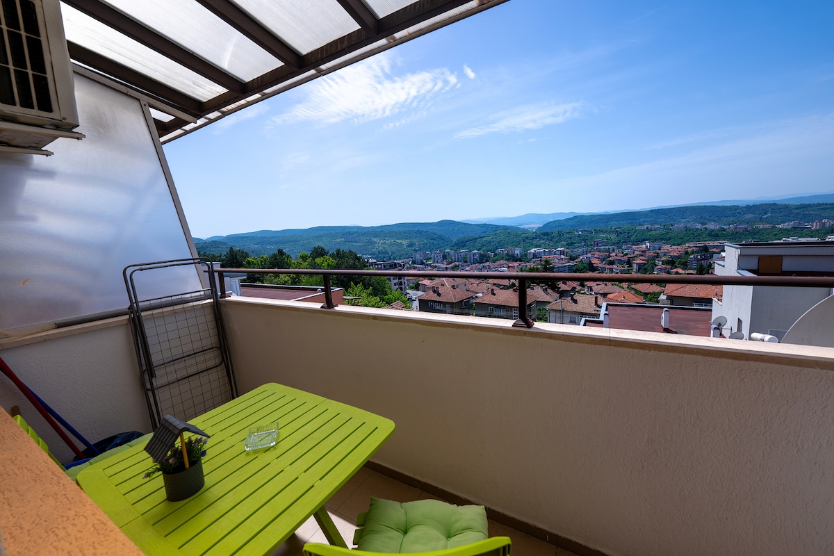 Century View VT – moderan apartman sa jedinstvenom terasom i panoramskim pogledom Boravite u NAJBOLJEM delu centra Velikog Trnova, u mirnoj ulici, na samo nekoliko koraka od tvrđave Carevec, spomenika jahačima, muzeja i vrhunskih restorana. Uživajte u modernom enterijeru, punim sadržajima i jedinstvenoj terasi sa prekrasnim pogledom na grad – idealno za udoban, miran i nezaboravan boravak u srcu Velikog Trnova!