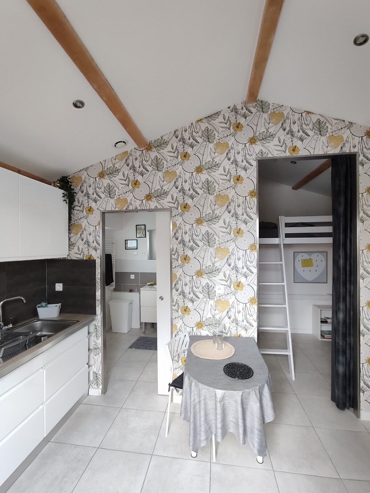 Volite sebe malo, mnogo, strastveno... ludo! Pobjegnite u dvoje za noć ljubavi u našem atipičnom potkrovlju. Uživajte u kadi, izležavajte se u XXL tuš-kabini, probudite čula u nestašnom uglu i zaboravite u udobnosti kreveta dimenzija 160x190. Počastite se najvrednijim: dobrim vremenima. Sve što vam je potrebno za nesmetan boravak je već na licu mesta, samo treba da uživate u sadašnjem trenutku. 45 minuta od Nantesa.
