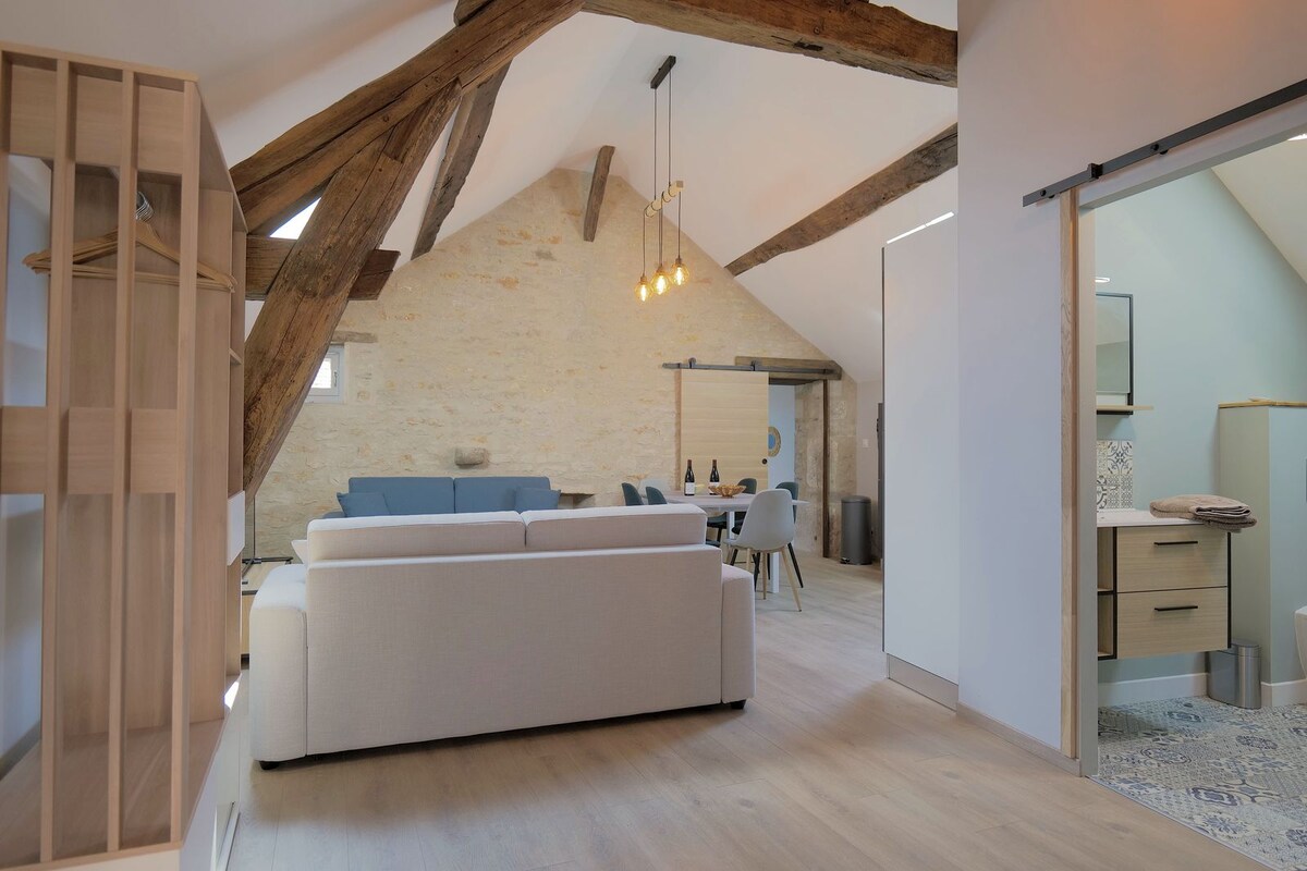 U srcu grada vojvoda od Burgundije, pozivamo vas da dođete i otkrijete apartman Bacchus. Ova bivša pekara i njen nadsvođeni podrum, koji je u svoje vrijeme služio kao zanatska radionica, sada vas dočekuje u luksuznom potkrovlju renoviranom za boravak u vinskoj i gastronomskoj prestonici Burgundiji. Njegova centralna lokacija u gradu, u blizini restorana, spomenika i javnog prevoza, posvećena je opuštanju i opuštanju.