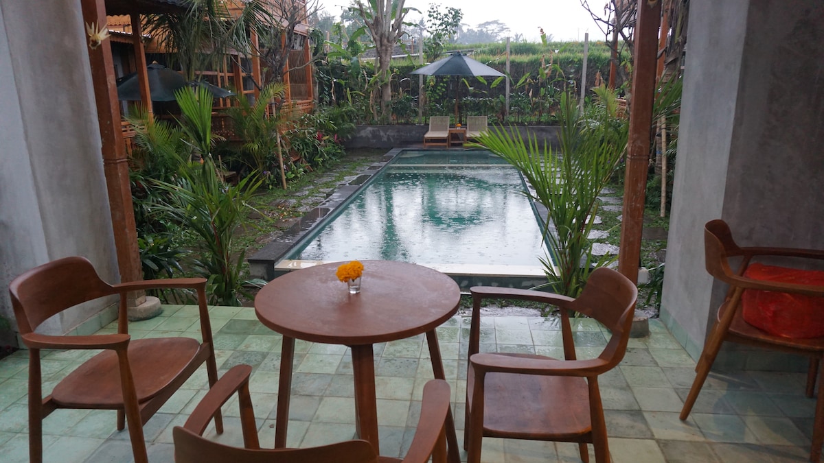 Nalazi se u centru grada Ubuda, samo 5 minuta hoda do glavne ulice Ubuda. Pruža smještaj kao što su bazen, luksuzno kupatilo, besplatan Wi-Fi (vrlo brz) i recepcija non-stop. Naš superiour apartman može da ima balkon ili direktan pogled na bazen. Ako želite, slobodno nam se obratite i mi ćemo zaključiti vaše želje. Doručak je uključen! Sobe su opremljene klima-uređajem, električnim loncem za čaj, TV-om ravnog ekrana i privatnim luksuznim kupatilom.