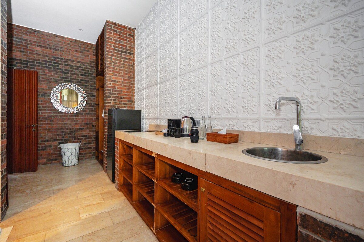 Dobro došli u Sebelas Studio by EVDEkimi — moderan, potpuno opremljen stan u srcu Ubuda. Uživajte u udobnom bračnom krevetu, privatnom balkonu, kuhinji, pametnom TV-u, brzom Wi-Fi-u i zajedničkom bazenu sa smuti barom. Studio uključuje mašinu za pranje veša, kupatilo sa tušem, sredstva za higijenu, ogrtače i papuče. Usluga konsijerža dostupna za transfere, obilaske i još mnogo toga. Miran boravak sa svime što vam je potrebno da biste se osjećali kao kod kuće.