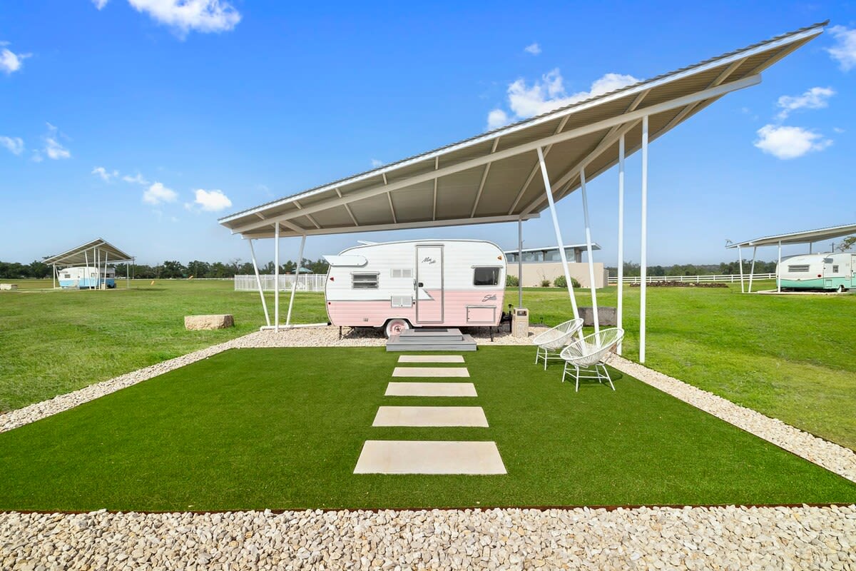 Počastite se mirnim, zabavnim glampovanjem sa gospođicom Loti, obnovljenom Šastom iz 1961. godine koja je dio Retro odmarališta Blue Skies inspirisanog Palm Springsom. Ovo odmaralište ima sve što vam je potrebno za opuštanje, uključujući fantastičan starinski dekor, bazen na otvorenom, zajednički roštilj na plin i paviljon sa spoljnim kaminom. Uživajte u zasebnom apartmanu sa privatnim kupatilom, zajedno sa kućnim ogrtačem, i isperite se pod ogromnim plavim teksaškim nebom u sopstvenom spoljnom tušu.