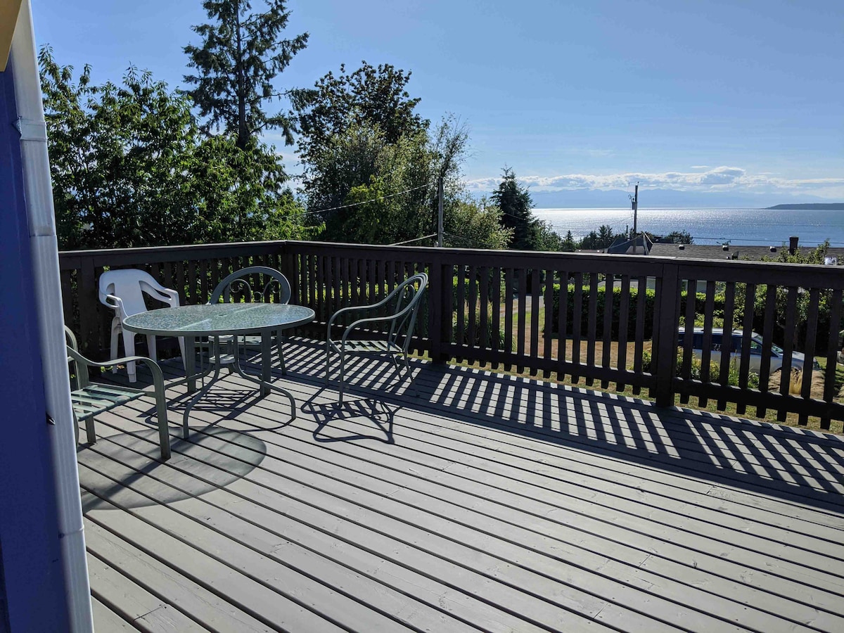 Mirni baštenski apartman uz okean s natkrivenim dvorištem, kaminom i roštiljem. Strma staza do privatne plaže. Uživajte u panoramskom pogledu na okean iz svog apartmana i gledajte kako se vidre igraju i kitove. Orlovi lebde sa krošnji drveća i kolibriji oko bašte. Novouređeni apartman se može pohvaliti potpuno opremljenom kuhinjom. Kupatilo za maženje sa kadom/tušem i grijanim podovima. Velika bračna soba s električnim kaminom (bez prozora) i druga spavaća soba s krevetom na sprat (s zavjesama od glavnog dnevnog boravka)