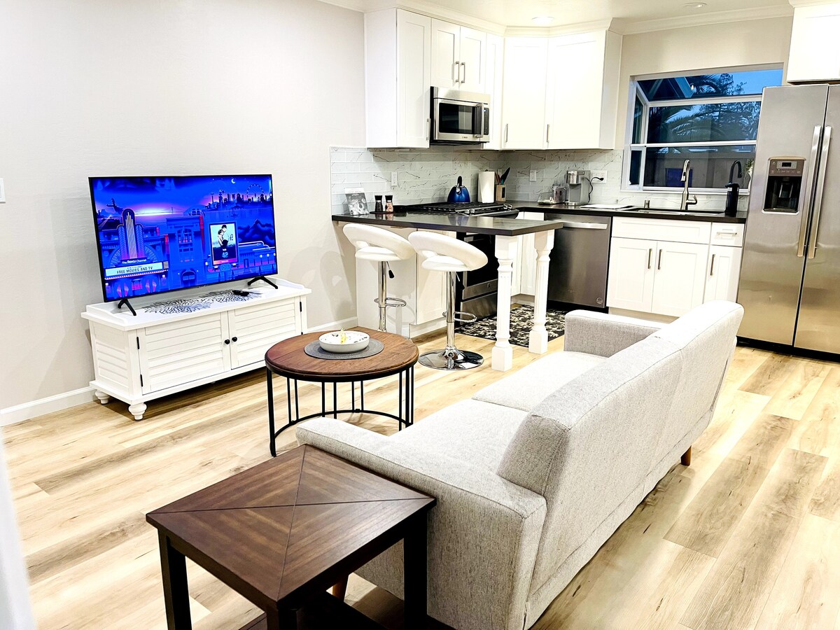 Naš ljubazno dizajniran udoban, ali MALI studio je savršen za solo putnika (previše udoban za 2). Moderan dizajn, luksuzni evropski kamen/pločice u kuhinji i kupatilu. Privatno dvorište, parking sa sigurnosnom kapijom, vešernica, električni kamin, tuš sa efektom kiše, LED ogledalo, Keurig, radni sto, jak Wi-Fi, potpuno opremljena kuhinja sa priborom za jelo i posuđem. Blizu aerodroma SJC, kampusa SJSU, SAP centra, Kongresnog centra, centra San Hozea, autoputa 87, tehnoloških kompanija kao što su Zoom, Adobe, PWC, EY. Japanska četvrt je u pešačkoj udaljenosti.