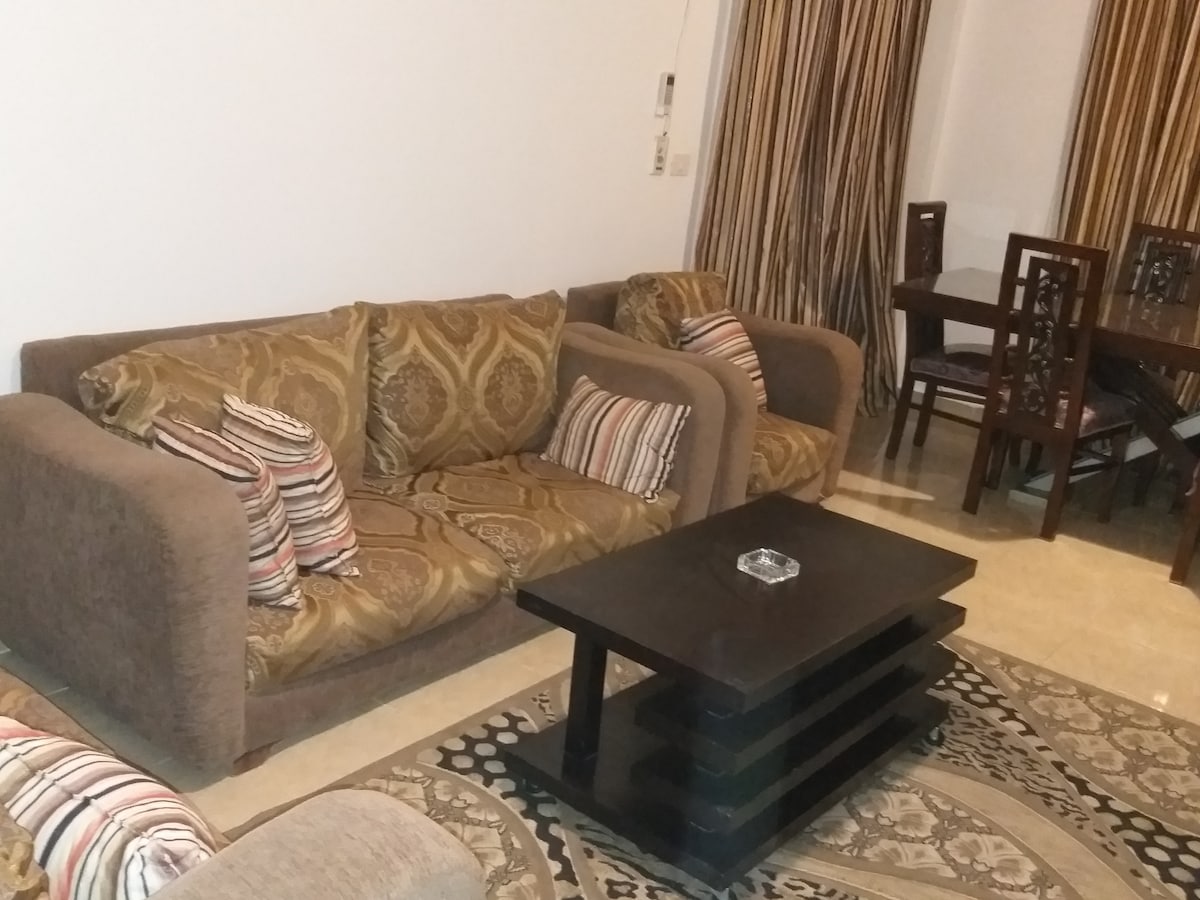 Bring the whole family to this great place with lots of room for fun. The apartment is in the basement floor level. (Thus mobile network isn't good, but WiFi overcomes this point) It's very neat & elegant. It's close to the airport and public transport. It's 10 minutes away from "90 street", the liveliest road in New Cairo. It's good for married couples, solo adventurers, business travelers, and families (with kids). It's in a safe neighborhood in New Cairo near Your Gym (for Ladies).
