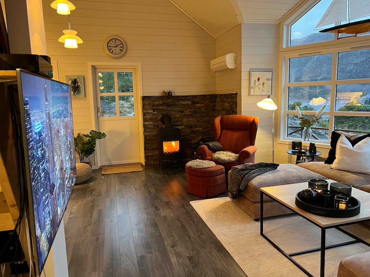 Samočišćenje - bez naknade za čišćenje! Peškiri i posteljina su obezbijeđeni - bez naknade. 12 km od Pulpit Roka, na ulazu u spektakularni Lisefjord, pronaći ćete našu brvnaru sa prvoklasnim pogledom. Za opušteniji boravak, opustite se i uživajte u zadivljujućem pogledu na vatru ili se opustite u hidromasažnoj kadi Zimska sezona - važna napomena! Tokom negativnih temperatura, u brvnari nema VODE. Prenosne posude za vodu su dostupne za punjenje. Hidromasažna kada takođe može biti nedostupna. Obratite nam se za upite.