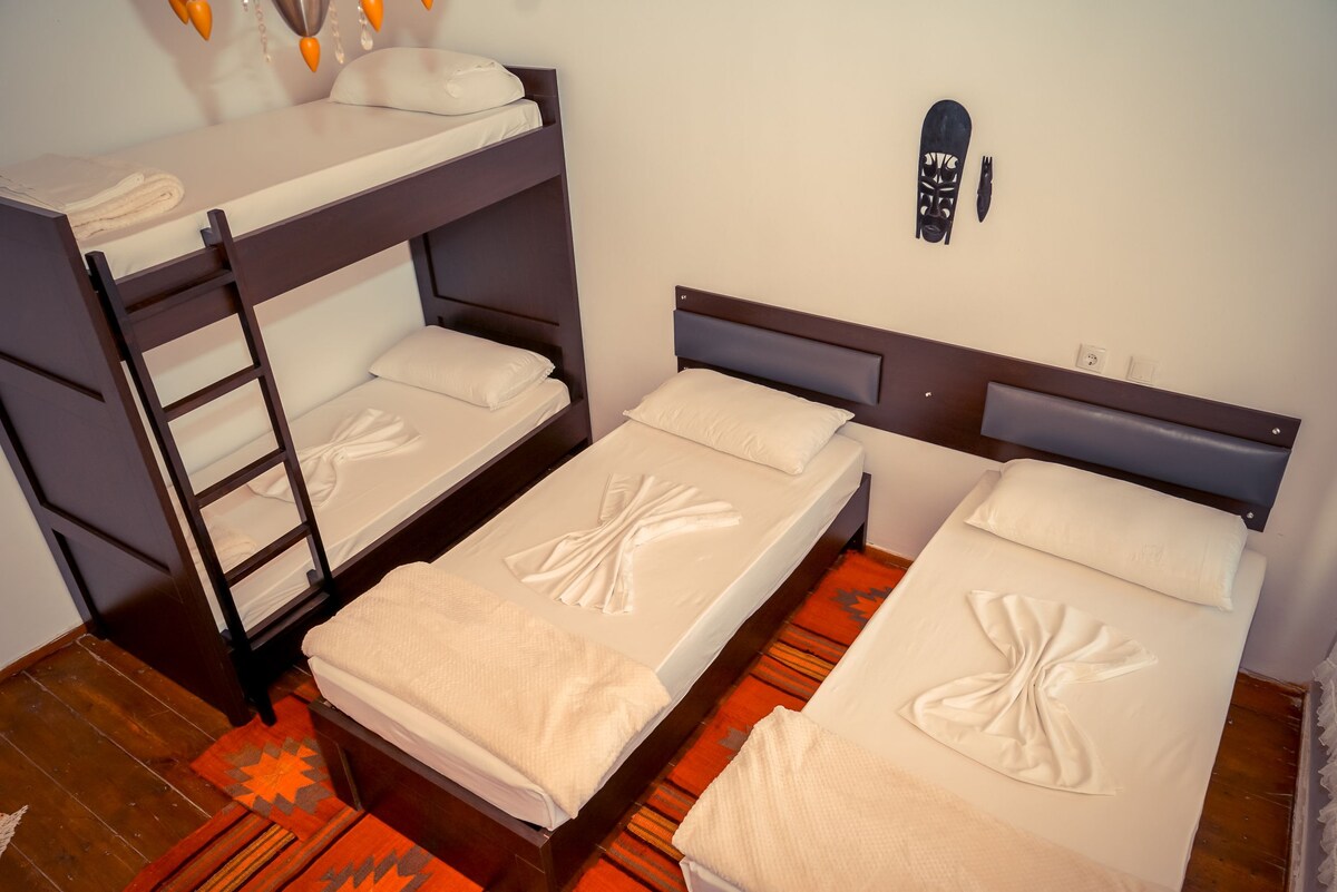 1 spavaća soba sa 2 kreveta za jednu osobu može biti pričvršćena za bračni krevet i 1 krevet na sprat. wi-Fi, besplatan parking, klima-uređaj