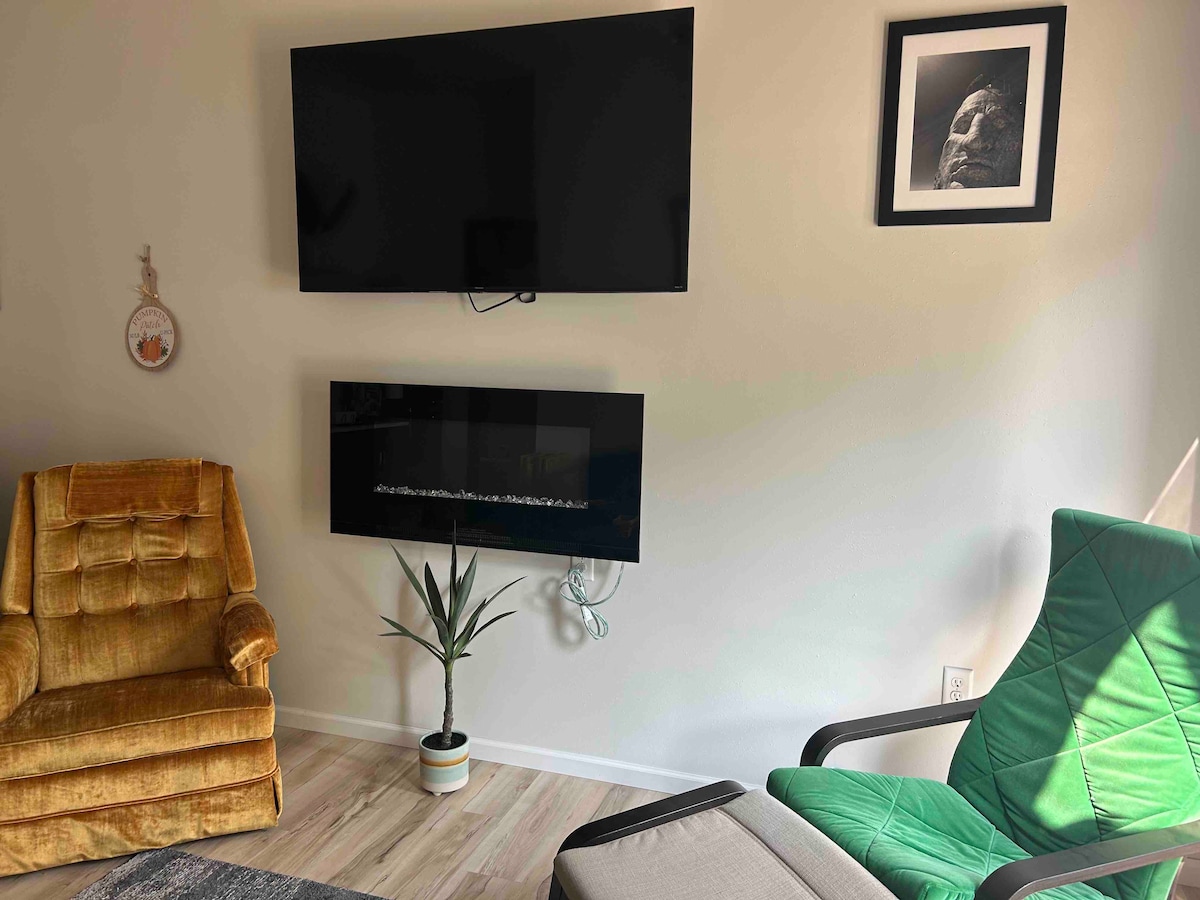 Cozy & comfy, 430 sq ft, 1 bedroom/1 bath unit attached to our new garage so like the garage, the construction in this is also new! Queen & twin bed in bedroom & the sofa is a pull-out. Has a Keurig, drip, KCups, coffee, microwave, & air fryer & pizza oven. AC/heat split unit keeps you comfy. A 55" Roku TV has Netflix & Hulu. Nonsmoking indoors & out. **Garage use can be arranged for hunting dogs, ask about it! We are laid-back, if you need something, just ask! We are happy to oblige! :)