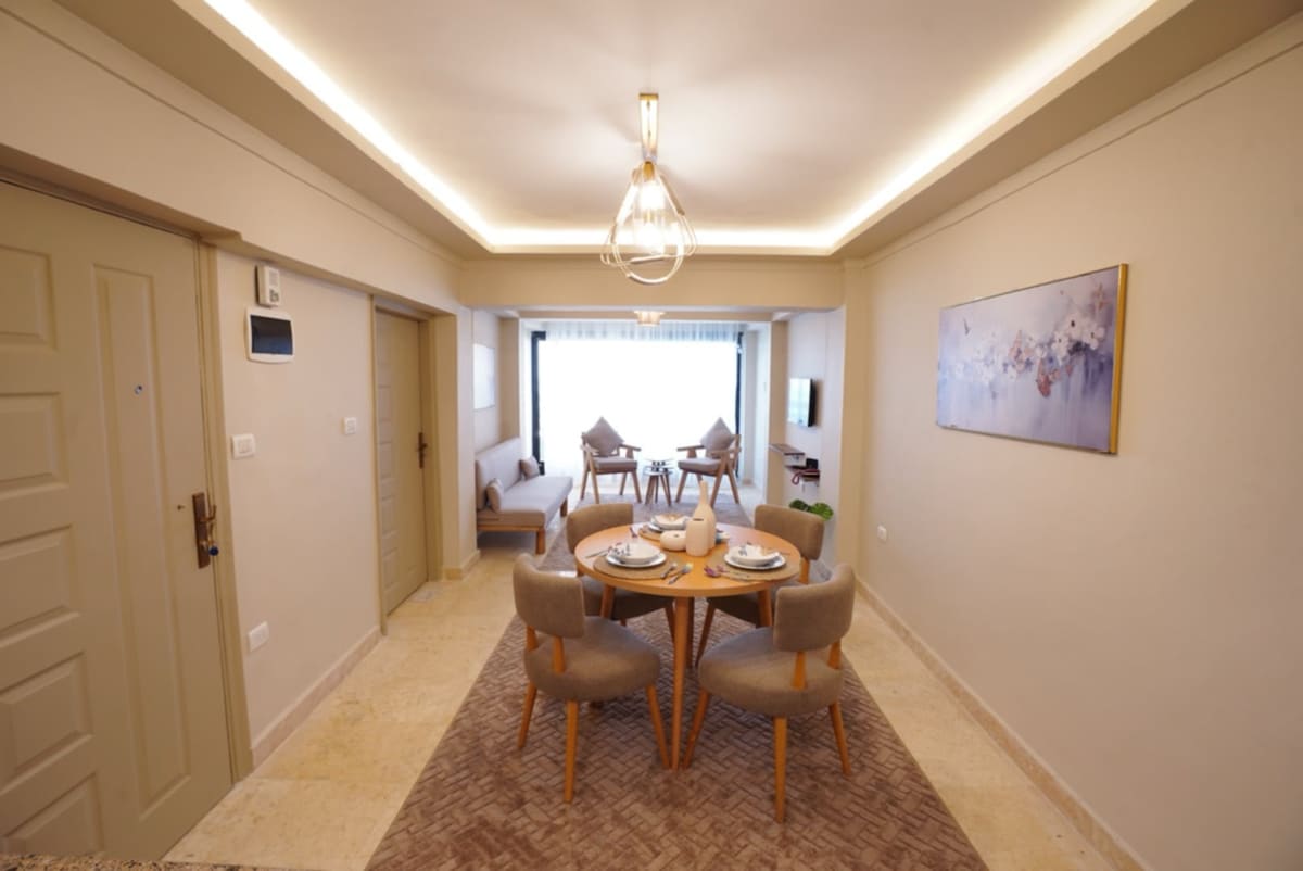 Dobro došli na svoje elegantno mjesto u D-Townu u Aleksandriji! Ovaj potpuno renovirani jednosobni stan nudi zadivljujući bočni pogled na more i modernu udobnost. Spavaća soba ima plišani bračni krevet, savršen za opuštajuću noć. Opustite se u elegantnom životnom prostoru opremljenom svim sadržajima koji su vam potrebni. Smješteni u srcu grada, bićete na korak od živopisne kulture, istorijskih znamenitosti i užurbanih pijaca. Idealno i za poslovne putnike i za turiste koji traže spoj udobnosti i praktičnosti.