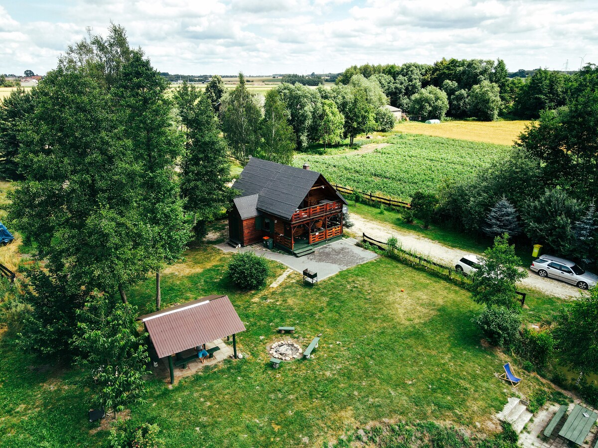 Ovde ćete se opustiti i udisati svež vazduh. Oko seoske kuće je šuma. U daljini su jezera na kojima posmatrate divlje životinje. Staze za duge šetnje ili biciklističke ture. Objekat ima ognjište i viseće ležaljke za odmor. 2 km od seoske kuće je svečani Ługi. 7 km je iznajmljivanje kajaka. 10 km odavde je mesto gde možete da jedete svežu ribu. Kućni ljubimci su dobrodošli. Tišina i šuma će vam dati mnogo pozitivne energije!