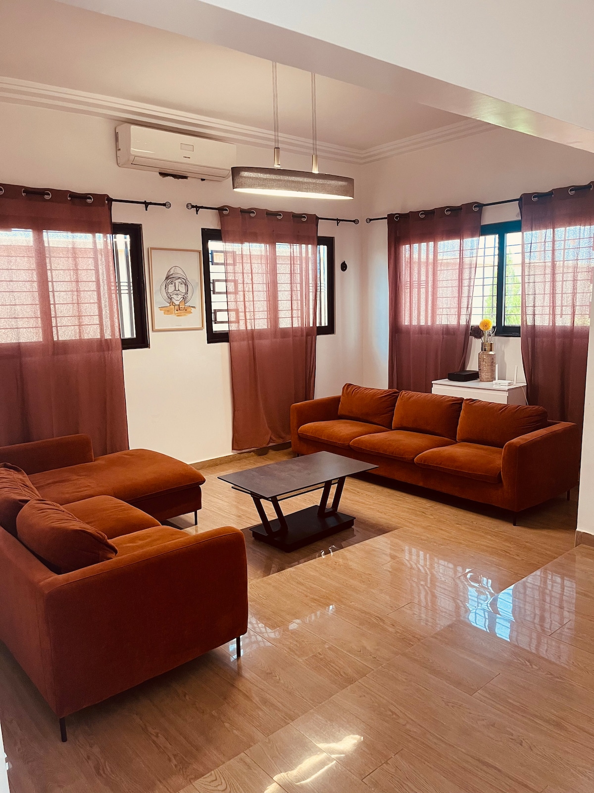 Ceo i nezavisni smeštaj sa tri nameštene, klimatizovane spavaće sobe... moderan, na drugom spratu, 5 minuta od raskrsnice Tankpe, tih i pristupačan. Za parove i cijele porodice. ovaj odličan smještaj vam nudi mnogo prostora i sadržaja za optimalan boravak. Smart TV u 2 spavaće sobe Neograničen internet. Kanal+ IPTV, Dostupni su frižider i zamrzivač Usluge održavanja roštilj Hidromasažna kada za 2 osobe Napomena Nije uključena cijena za hidromasažnu kadu na naduvavanje za 6 osoba