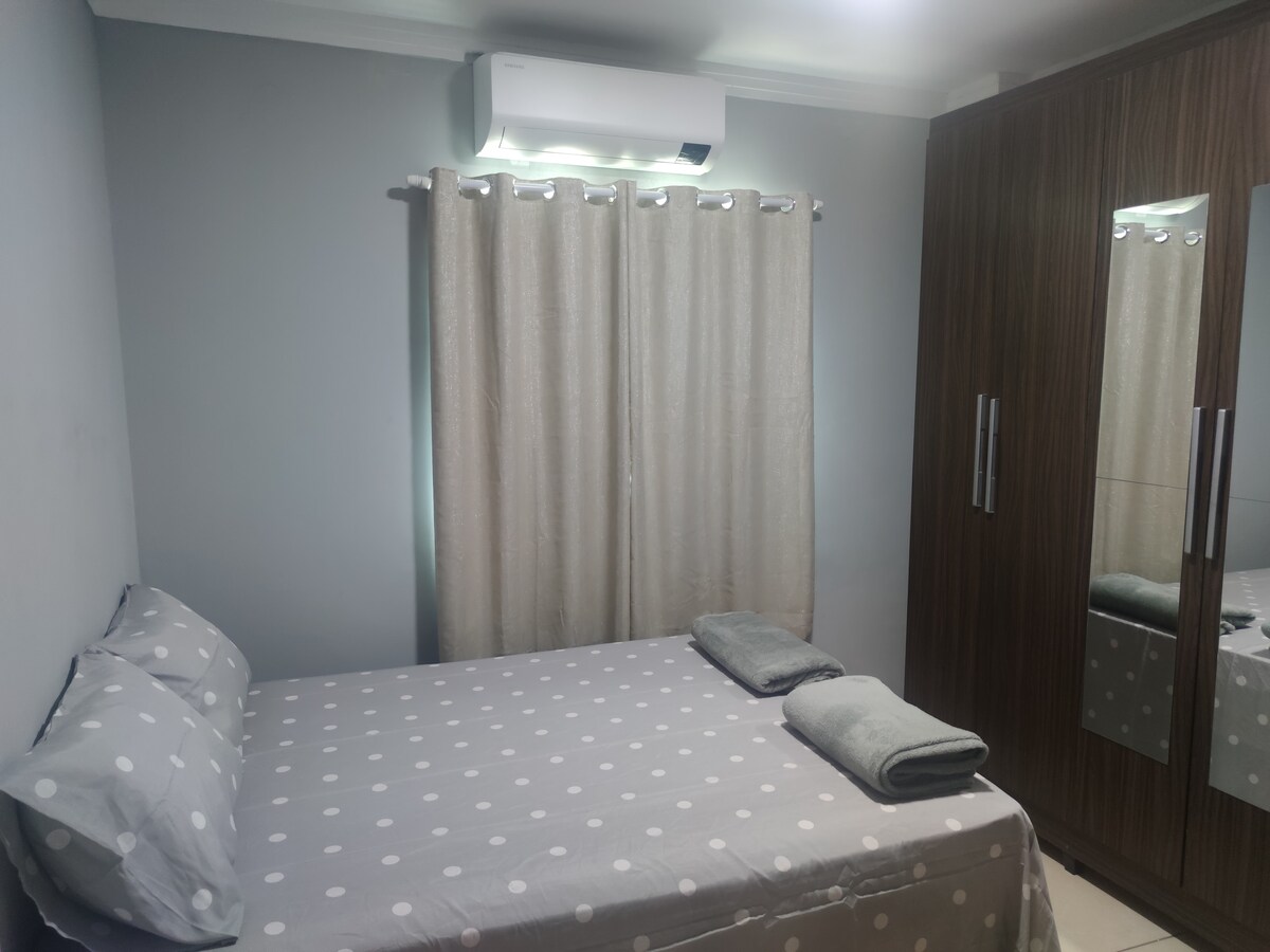 Ovaj smeštaj ima svoj stil, opustite se u ovom mirnom i elegantnom prostoru. 300 MB interneta, klima uređaj, pribor za kuvanje, posteljina, po popularnoj ceni. Vaš kućni ljubimac je dobrodošao, a ipak je deo porodice. U blizini se nalazi nekoliko prodavnica koje mogu da obavljaju osnovne kupovine tokom dana peške. Udaljen je 10 km od regiona 44 i autobuske stanice, 5,5 km od apartmana, 6,5 km od obilazaka voda u vodama 500mt od rodnog građanina, 11 km od tabernaka vere i izlaz od 9 km do trindade