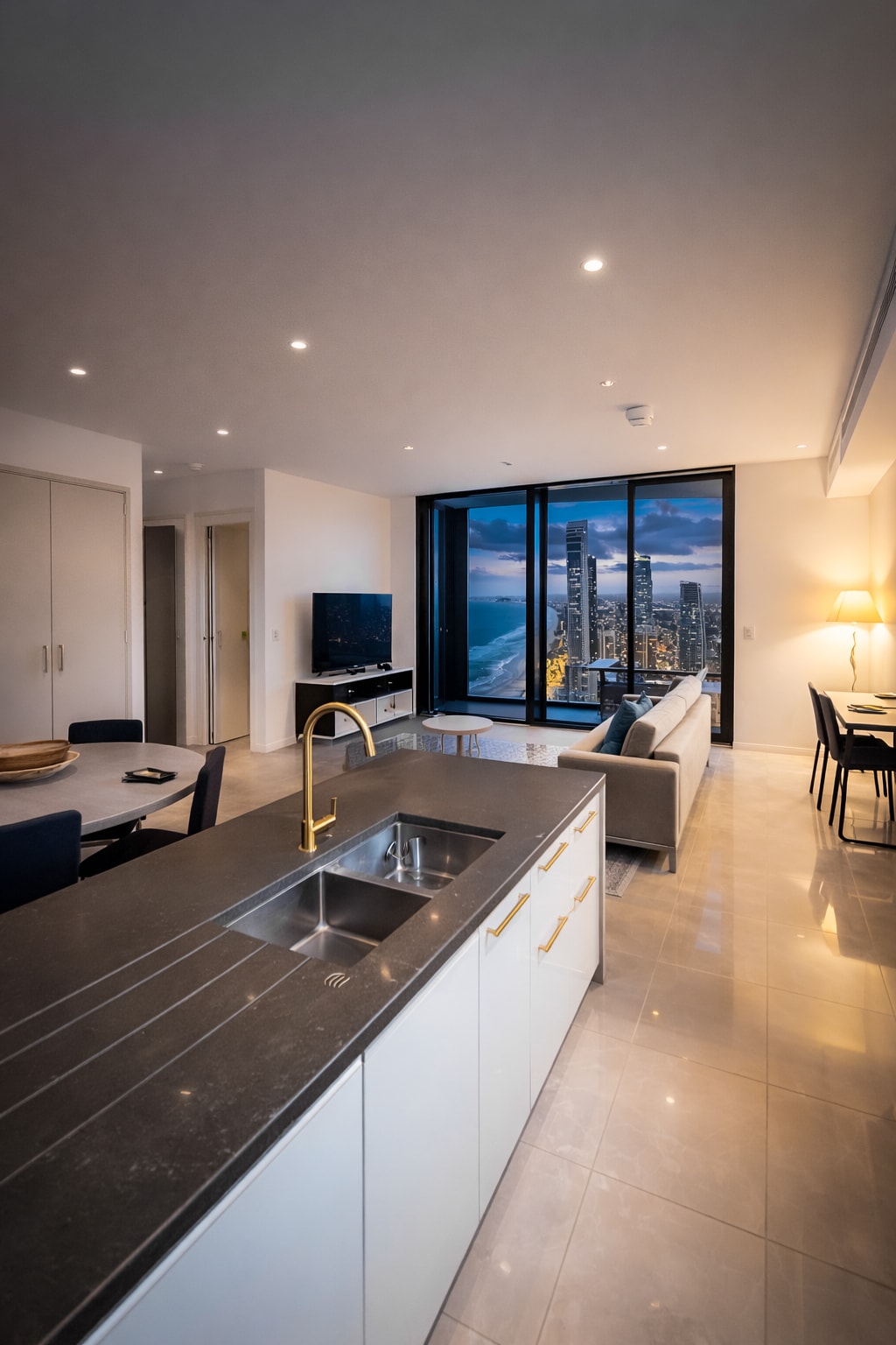 Stan na plaži koji se nalazi na visokom spratu sa prozorima od poda do plafona, privatnim balkonom sa pogledom na okean i pristupom plaži Surfers Paradajs preko puta. Stan ima bračni krevet u spavaćoj sobi i kauč na razvlačenje u dnevnom boravku. Potpuno opremljena kuhinja, brzi Wi-Fi, klima-uređaj, televizori sa Netflix-om i YouTube-om, besplatan parking i kompletna privatna praonica veša. Gosti imaju pristup teretani, spa centru, sauni, bazenu i roštiljima u blizini bazena i na krovnoj terasi.
