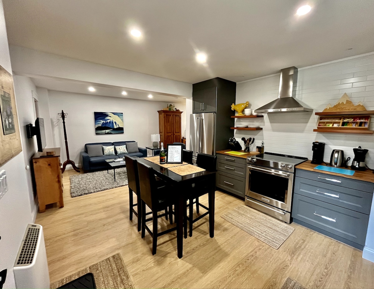 Dobro došli u svoju udobnu planinsku bazu u Golden, BC. Ovaj privatni apartman s 3 kreveta i 1 kupatilom savršeno je mjesto za opuštanje nakon istraživanja Roki planina. Uživajte u našoj sauni od kedra na drva, omiljenoj gostima nakon skijanja ili planinarenja. Nalazite se u mirnom području, samo 4 minuta od centra grada, 7 minuta hoda do prodavnice namirnica i 18 minuta do planinskog odmarališta Kicking Horse. Apartman je udoban, prostran i idealan za porodice, parove ili male grupe koje traže miran i praktičan boravak.