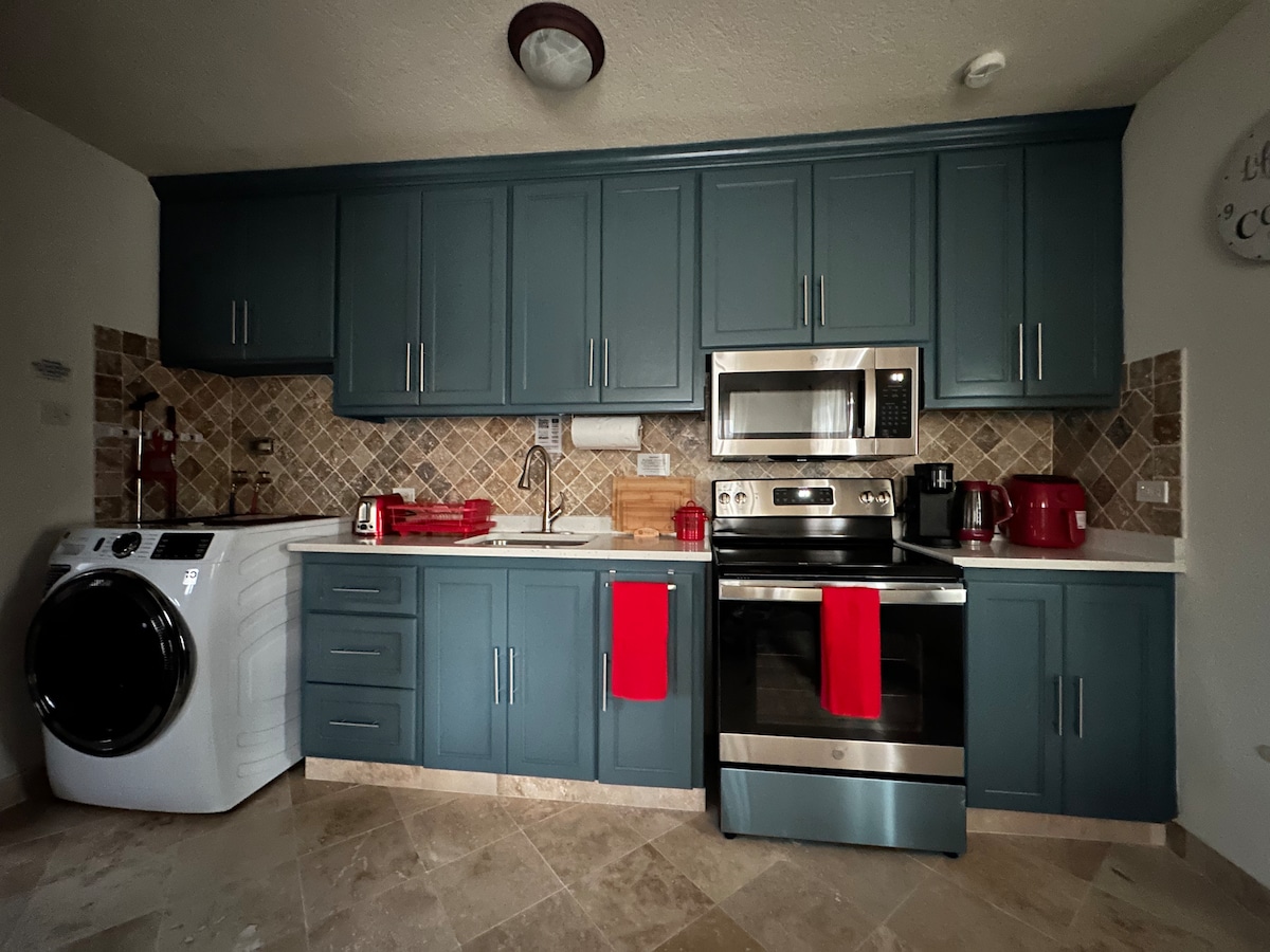 Potpuno namješten studio apartman sa 2 kreveta koji se nalazi na samo pet (5) minuta od aerodroma. (Međunarodni aerodrom Grantley Adams) (GAIA, BGI). Odlično za presjedanje ili odmor . Udaljeno 15 minuta od američke ambasade. Deset (10) minuta od Oistins Fish Fry, raznih barova, prodavnice prehrambenih proizvoda, kao i 6 minuta od sela u Koverliju i šoping kompleksa Six roads. Grad Bridžtaun je (20) minuta vožnje udaljen od ovog udobnog stana. Uživajte u parking mestu, privatnom ulazu i besplatnom Wi-Fi-u.