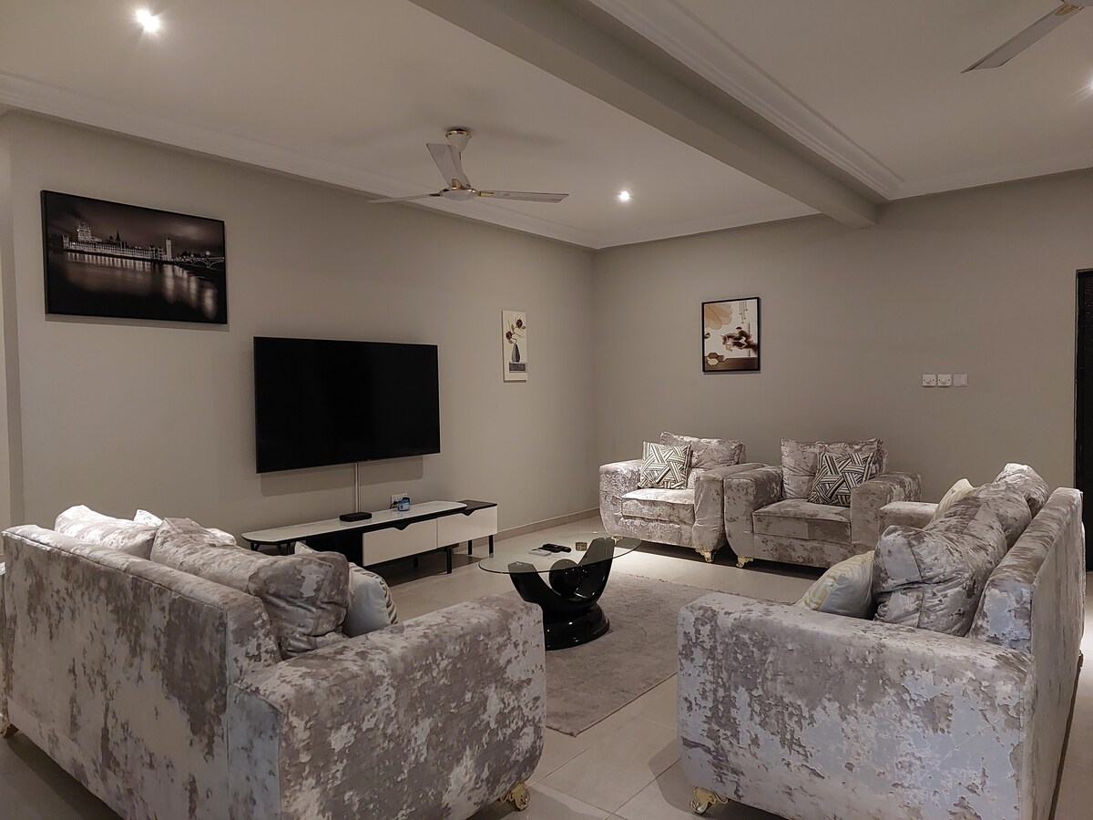 Uživajte u obogaćujućem iskustvu u ovom luksuznom smještaju u Kasoi, savršenom za vašu porodicu i grupe. Kuća je potpuno opremljena klima-uređajima, funkcionalnom kuhinjom, izuzetno udobnim krevetima, udobnim kaučem, obezbeđenjem, neograničenim pristupom internetu, Dstv-om, Netflix-om i udobnom pergolom za sedenje na otvorenom. 25 minuta vožnje do prelepih plaža i 45 minuta vožnje do aerodroma bez saobraćaja. Opustite se i uživajte u ovom mirnom, spokojnom i elegantnom prostoru.