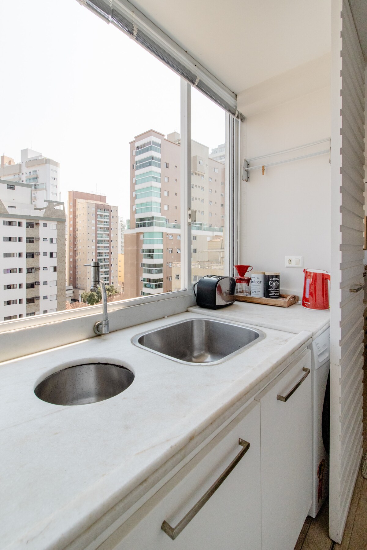Moderan jednosoban stan nedavno renoviran na Aveniji da Praja, pored kanala 4, sa bočnim pogledom na more i pored pekara, pijaca, restorana, barova i svega što vam je potrebno nekoliko metara dalje. Udaljeni smo samo 10 minuta hoda do Shopping Praiamar i Praiamar Corporate, a u odličnom smo centru za one koji moraju da se snađu u Santosu.