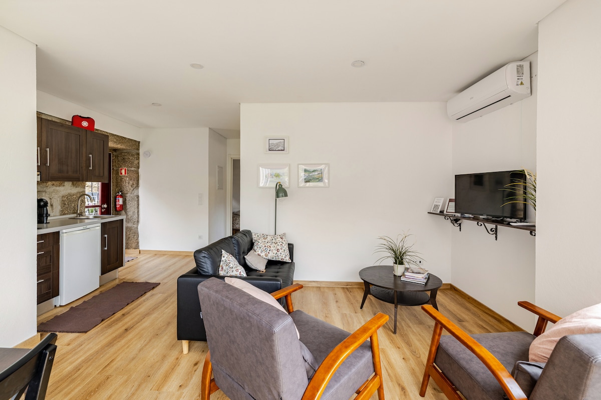 Uz panoramske prozore koji životnoj sredini daju osjećaj amplitude, omogućavaju ulazak prirodnog svjetla i zadivljujući pogled. Ima dnevni boravak, potpuno opremljenu trpezariju, nezavisnu spavaću sobu sa kupatilom i tuš-kabinom, kupatilo u spavaćoj sobi i HIDROMASAŽNU KADU na spoljnoj platformi. Vile Monte dos Xistos, na planini i okružene vinogradima i šumama, uživajte u lokaciji, 10 km od istorijskog centra Guimarães