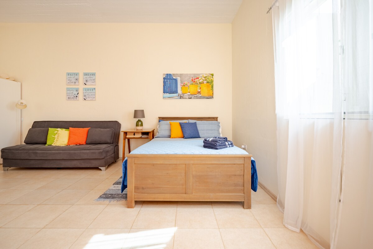 Garsonjera u prizemlju je potpuno opremljena sa kuhinjom,en-suite,bračnim krevetom, mašinom za pranje veša i klima uređajem. Siggiewi je selo smešteno na selu, udaljeno 12 minuta automobilom od međunarodnog aerodroma Luqa i nekoliko kilometara od Mdina, Rabat, Dingli litice, Zurrieq & Hagar Qim.Direktni autobus 201 do i od aerodroma staje na 2 minuta od garsonjere. Ghar Lapsi (bus109) i Blue Grotto (bus201) su najbliže plaže - možete se lako okupati u čistim vodama i uživati u pogledu na Filflu.