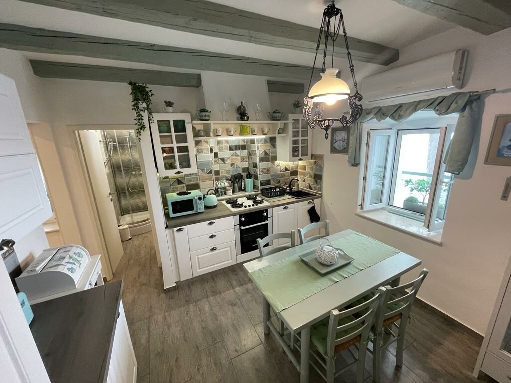 Stan je udaljen 1200 metara od plaže i 500 metara od sela Beli. Odmah ispod kuće nalazi se Pansion Tramontana (restoran). Imamo parking za naše goste. Možete da prošetate do plaže (10 minuta) ili automobilom. Imate 1 spavaću sobu sa bračnim krevetom, 1 kauč u kuhinji (potpuno opremljen sa svime što je neophodno), lođu sa pogledom na more, kupatilo i TV.
