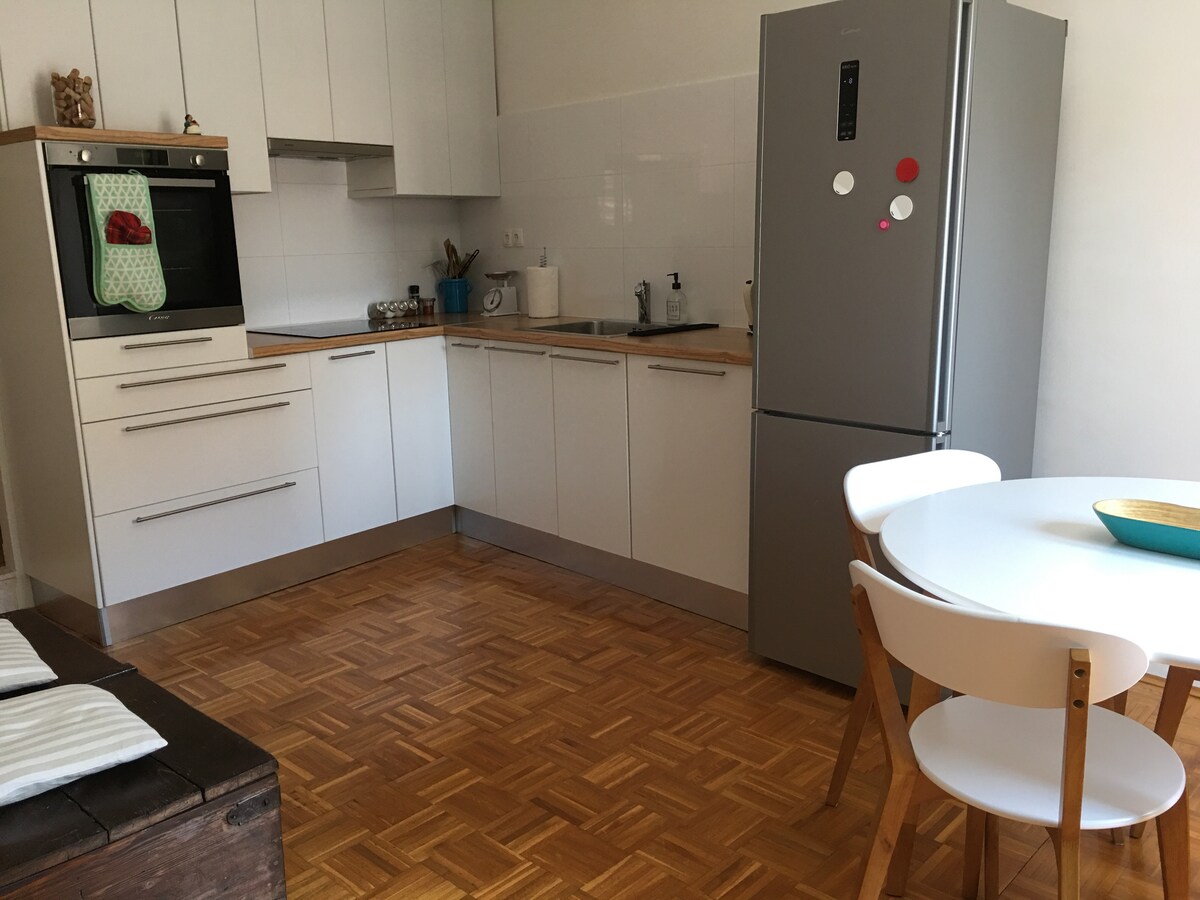 Stan se nalazi u ,verovatno najlepšem delu grada, sa pogledom na Stari grad Korčulu. Udaljen od centra grada je samo nekoliko minuta hoda, a takođe i Stari grad. Ispred stana se nalaze male gradske plaže i mesta za plivanje. Apartman je novouređen, lep, uredan i svetao. Možete uživati u miru i tišini, ali i biti vrlo blizu centra grada. Centar grada je udaljen 3 minuta hoda, a takođe i Stari grad sa puno barova i restorana. Terminal je u blizini. Pošaljite mi sva pitanja koja imate, rado ću vam pomoći. Cena zavisi od vrhunca/perioda van sezone.