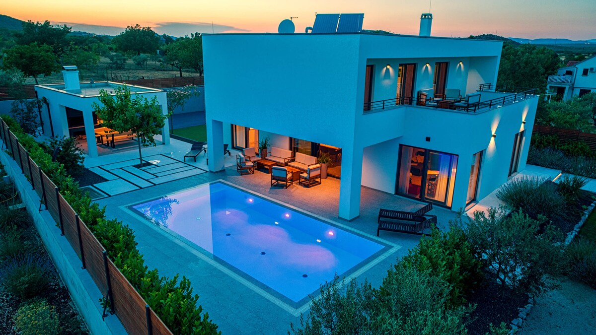 Vila Storia je prelijepa kuća za odmor u zaleđu Šibenika, udaljena samo 15 km od najbliže plaže. Blizu Nacionalnog parka Krka i okružen netaknutom prirodom, to je mjesto gdje ćete naići na potpunu privatnost i konačno napraviti prijeko potreban odmor od svakodnevnog života. Sa privatnim bazenom, košarkaškim terenom i dečjim igralištem, ovaj smeštaj pogodan za kućne ljubimce pruža miran odmor bez stresa za 2 porodice ili grupu do 8 osoba.